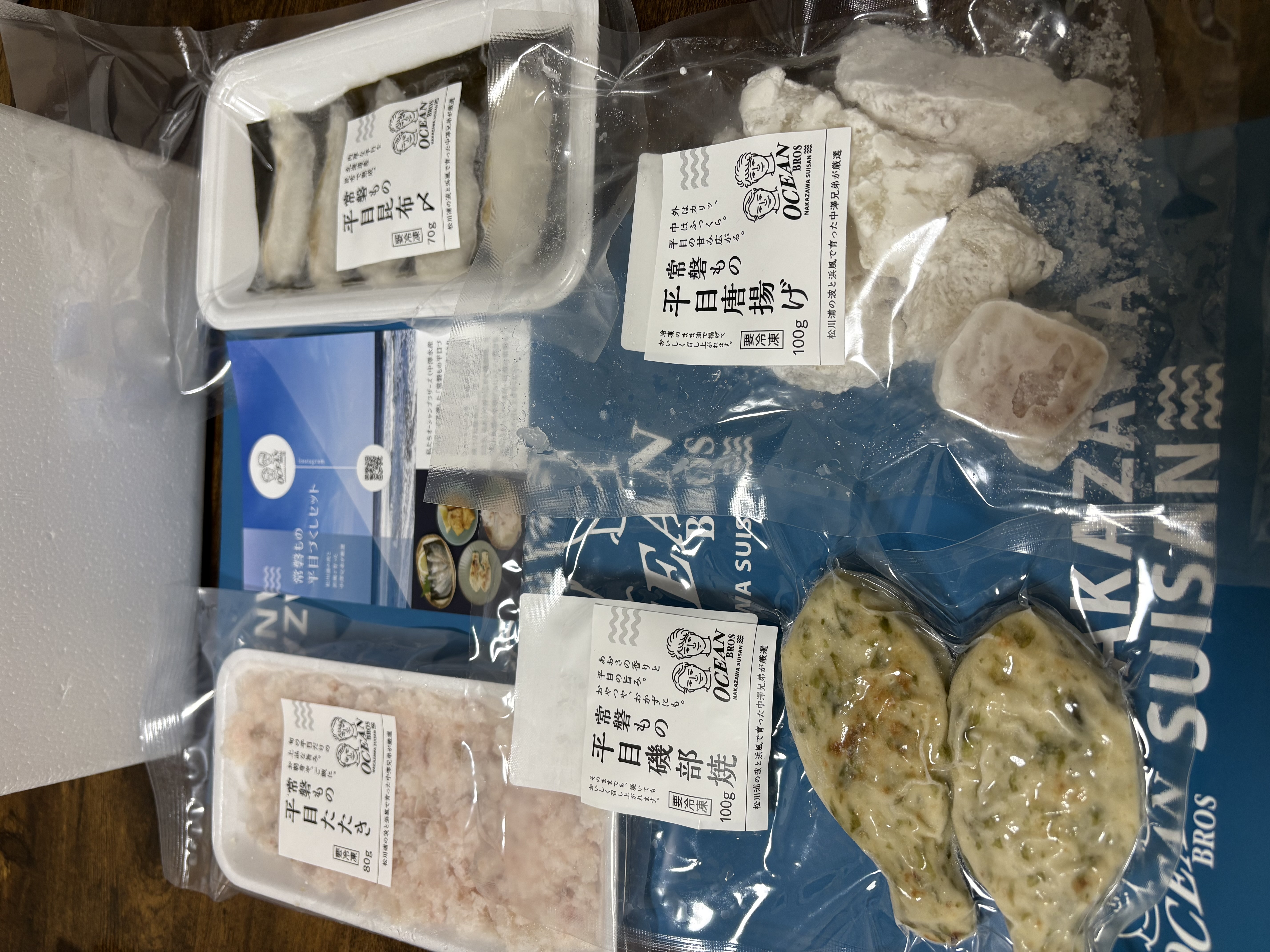 平目唐揚げは、下味が付いていて揚げるだけでカリッと中はふわっとして食感がよく味もいい塩味でした。磯部焼きはフライパンでサッと炙っていただきましたが、食べ応えがあり濃い味でご飯やお酒に合いそうです。