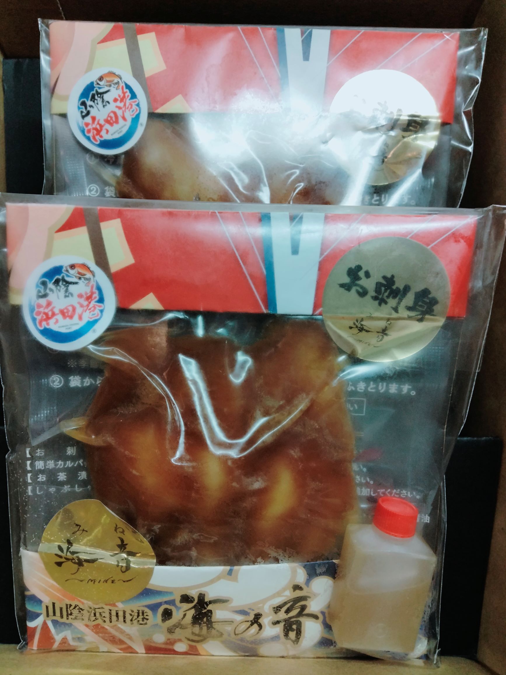 浜田の醤油を使用したタレが染みた身を味わってください。