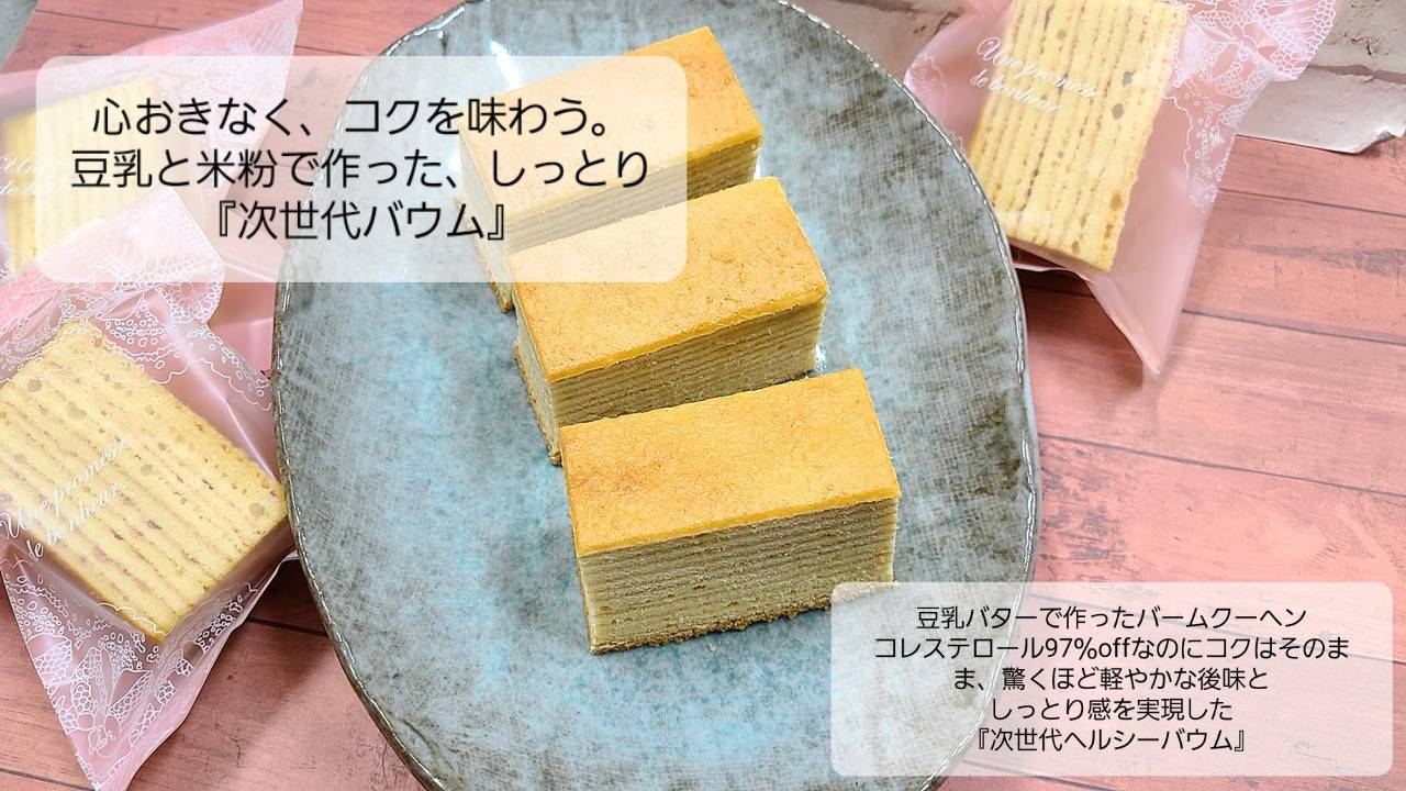 豆乳バターと米粉で作った「次世代ヘルシーバウム」。