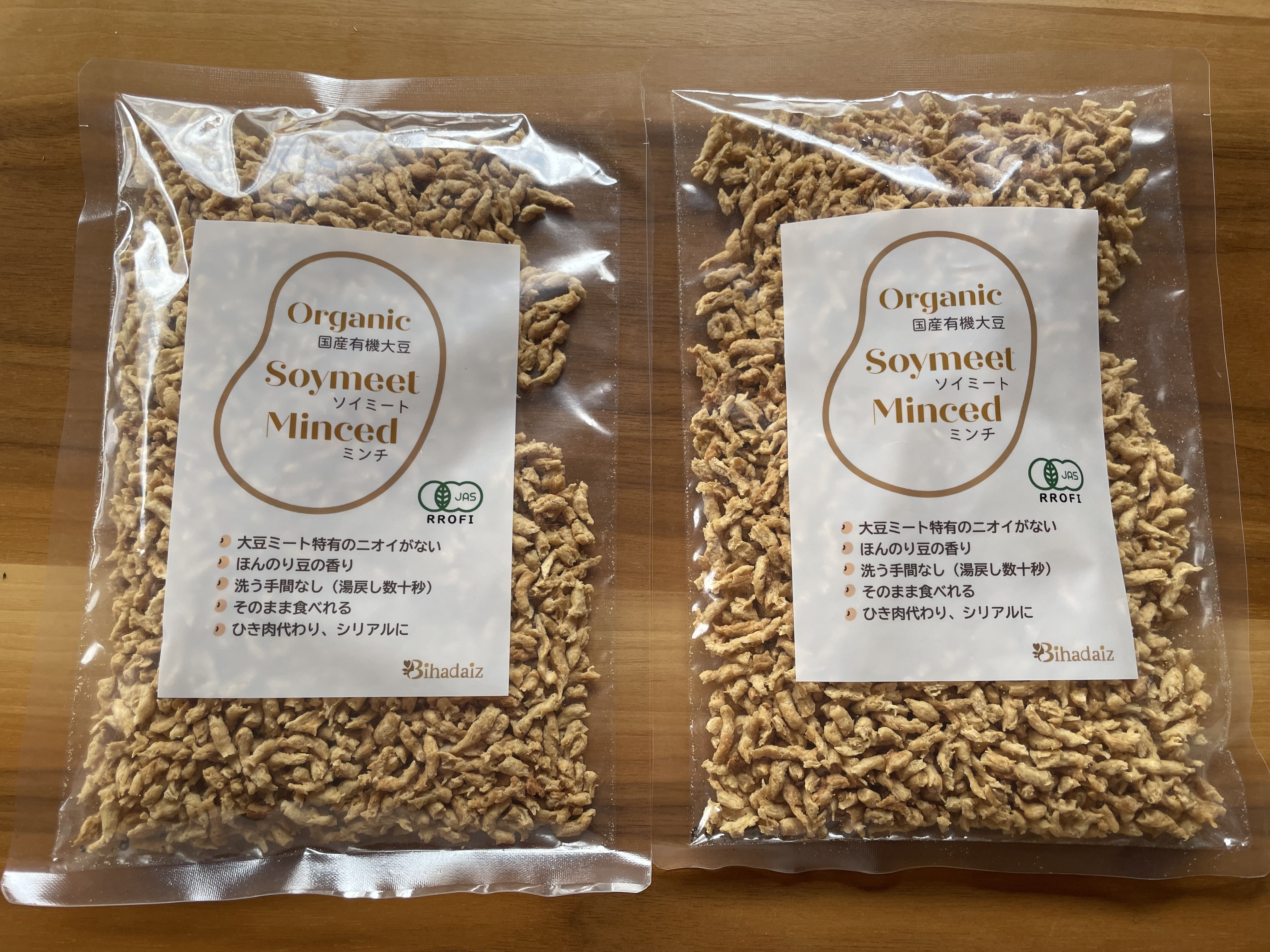 「美味しいことは、身体にいいこと。」Bihadaiz®︎の大豆ミートミンチは、雑味のないやさしい旨みと使いやすさにこだわって仕上げました。湯戻し不要で、そのままでも、サラダやスープ、ヨーグルトへのちょい足しでも楽しめます。忙しい日でも無理なく取り入れやすい、国産有機大豆100%のプレミアムミンチです。