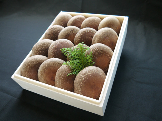 小さめの木箱に入った「想いの茸」はちょっとした贈り物に最適のサイズです。どんなシチュエーションでも喜ばれるギフトです。