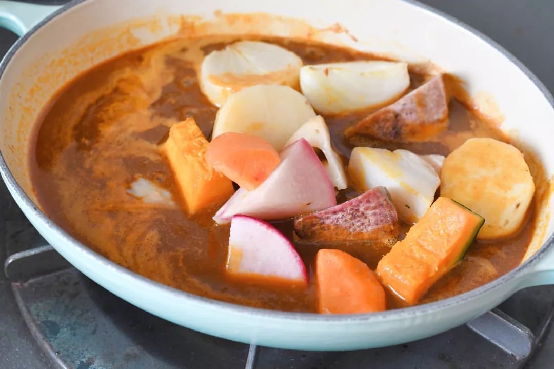 カレーに使ったのはグリルのお野菜だけど、蒸し野菜とか、お肉の付け合せで余ったのとか、レンジでチンした野菜でも良さそう。めちゃ簡単ですが(10分かかってない)、驚きなのは本格的な味!塩加減も風味も甘さもとろみもちょうど良い🎉(中辛なので、小さいお子様にはちょこっと辛いかも。)