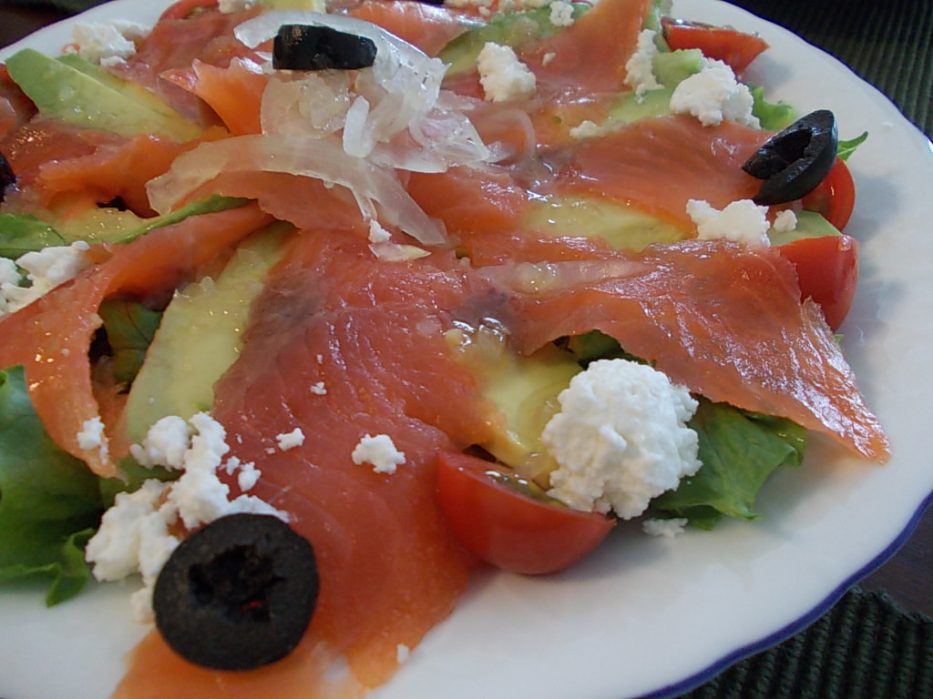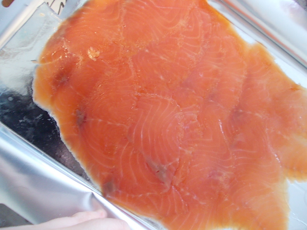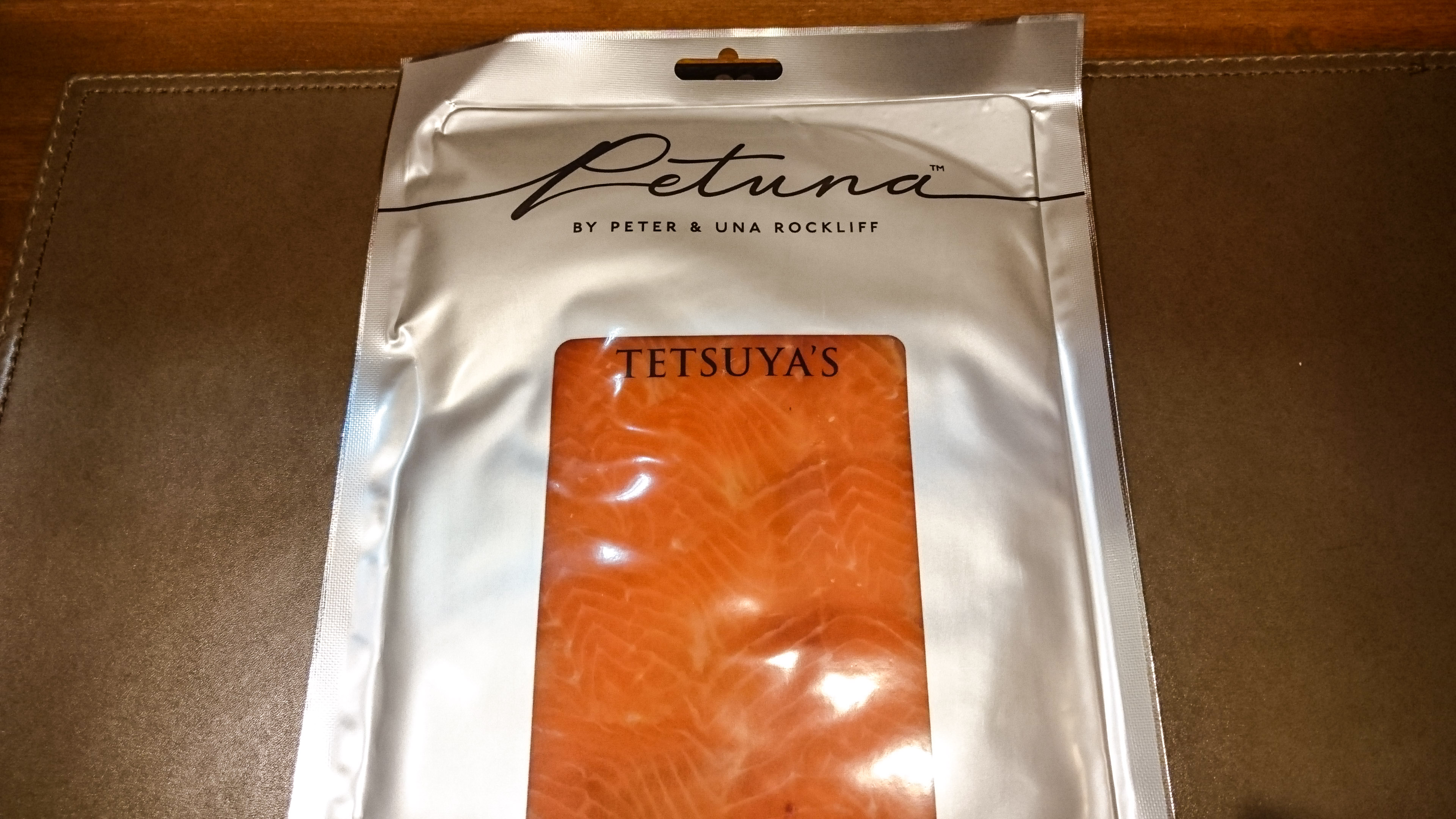 早速、スモークサーモンが大好きなお友達を招いてプチパーティーを開催、「TETSUYA'Sタスマニア産ソフトスモークオーシャントラウト」以外は、いつもの食材(レタス、キュウリ、トマト、ニンジン、アボカド、オリーブ)で、極端なアレンジはせず、前菜としてお皿にもりました。パッケージを開けるとやわらかな燻製香がただよい、サーモンの色がとても鮮やか!程よい身の厚さ加減で、盛り付け易かったです。早速いただいたのですが、その美味しさに二人ともびっくり。今まで食べていたスモークサーモンとは全く別物。塩の辛さも生臭さも全く無い。やわらかくもっちりと舌にまとわりつく感じ・・・これが「ソフトスモーク」という方法だから出せる食感なのだど感動!厳選されたサーモンを使っているだけあって、噛めば噛むほど上質なサーモンが持つ脂の旨さが口いっぱいに広がる感じがしました。