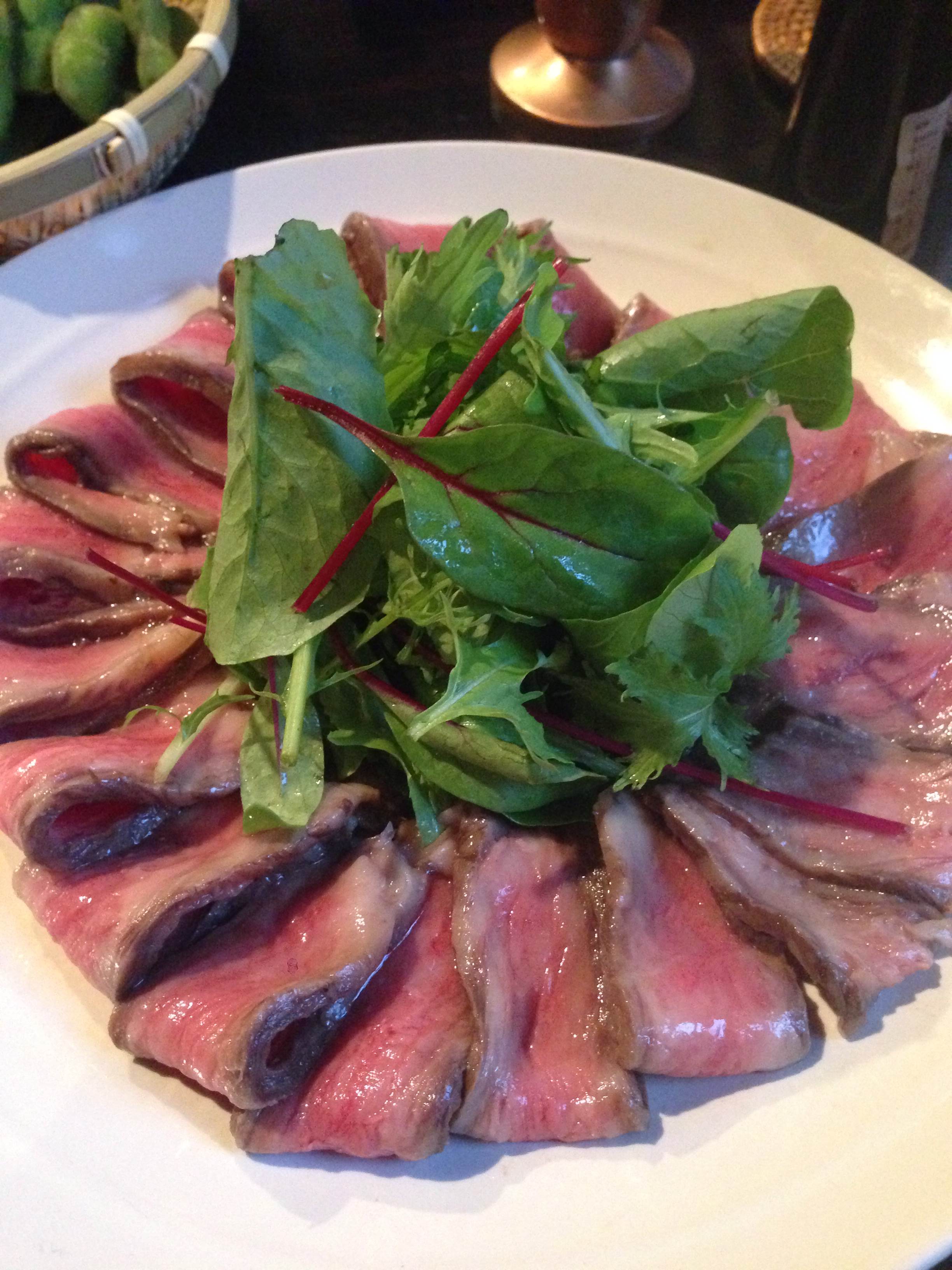 次は厚切りでぱくり、またもすぐになくなるのですが、脂がおいしい、すごくいい脂、濃厚なのに、さらりというか、後を引かない上品なお肉本来のおいしさ。