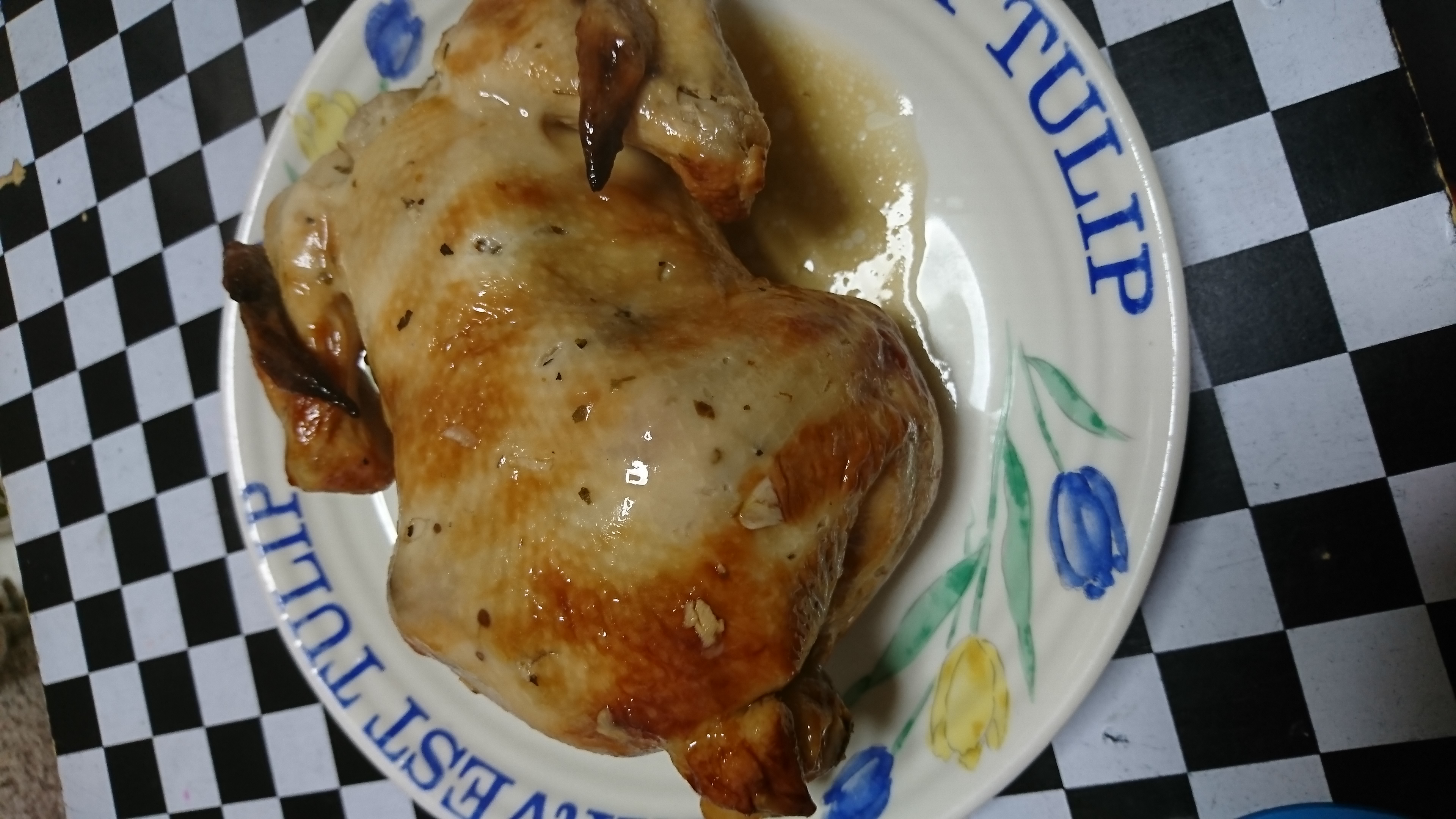 我が家で一番大きな皿を準備して、チキンを載せました。