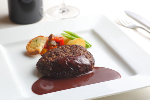 100%A5等級神戸牛のハンバーグです。たっぷりの野菜を使い、シェフが工夫を凝らし時間をかけて作ったこだわりのハンバーグ!仕込みに時間をかけ、こだわりの野菜を使うことで旨味をギュッと閉じ込めています。ソースが無くても、お口いっぱいに広がるお肉の味を楽しんでいただけます。また、当店特製のソースをお付けしておりますのでそちらも合わせてご賞味下さい。