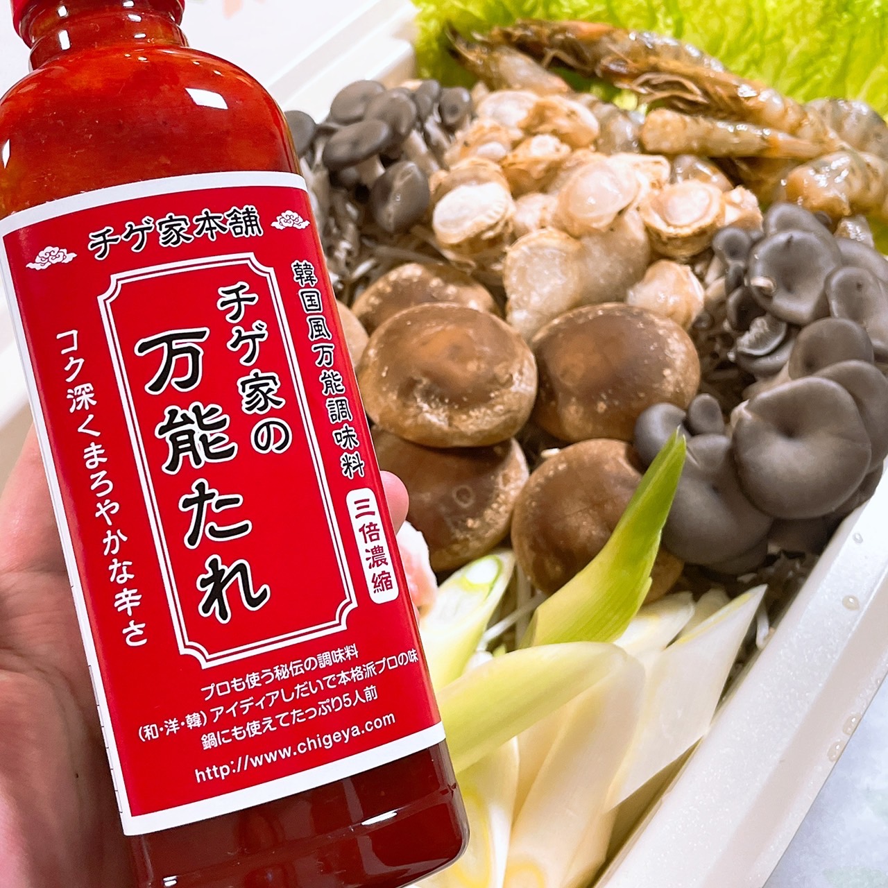 当社の『チゲ家の万能たれ』は美味しく、無駄無くをテーマにもしており水で薄めるだけで本格【チゲ】が出来き、又アイディアしだいで色々と使える万能調味料として開発しました。