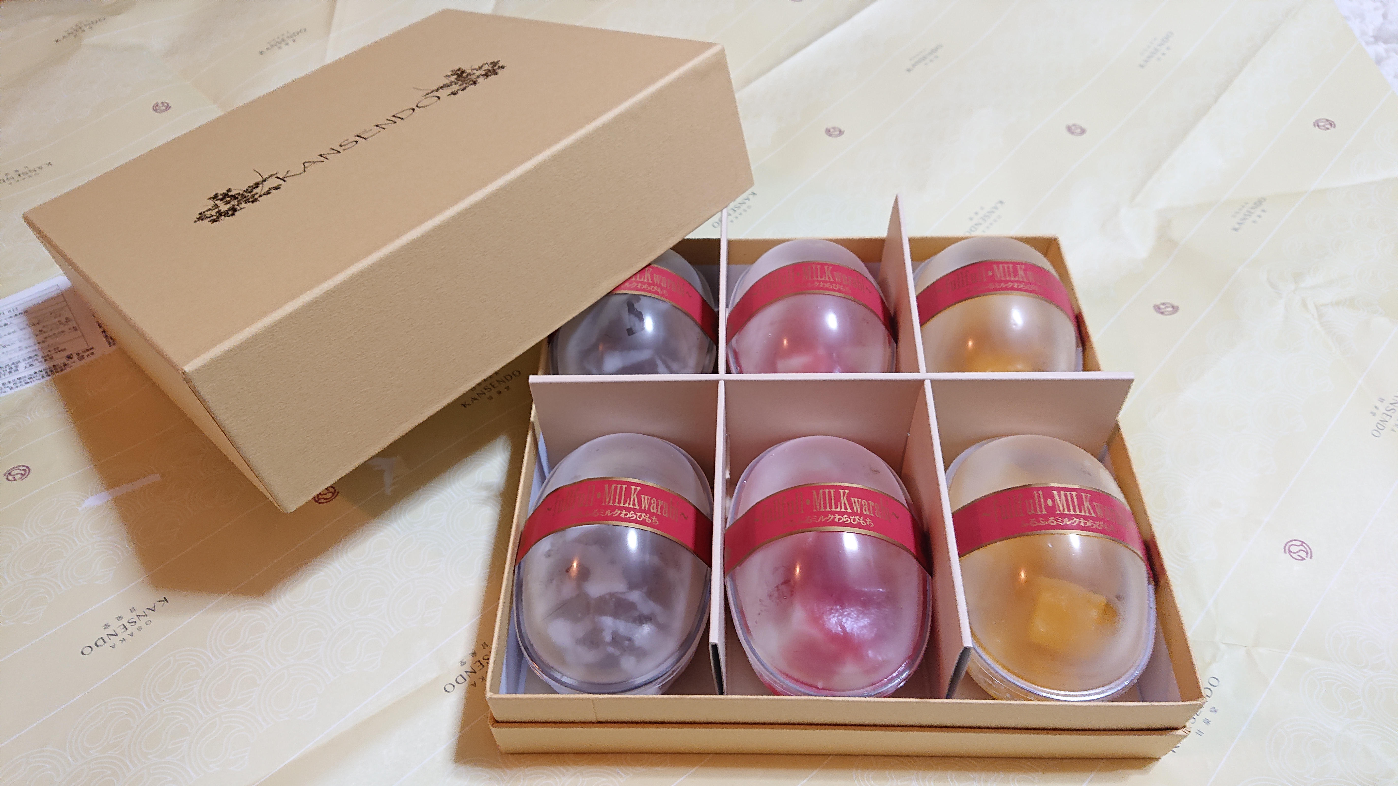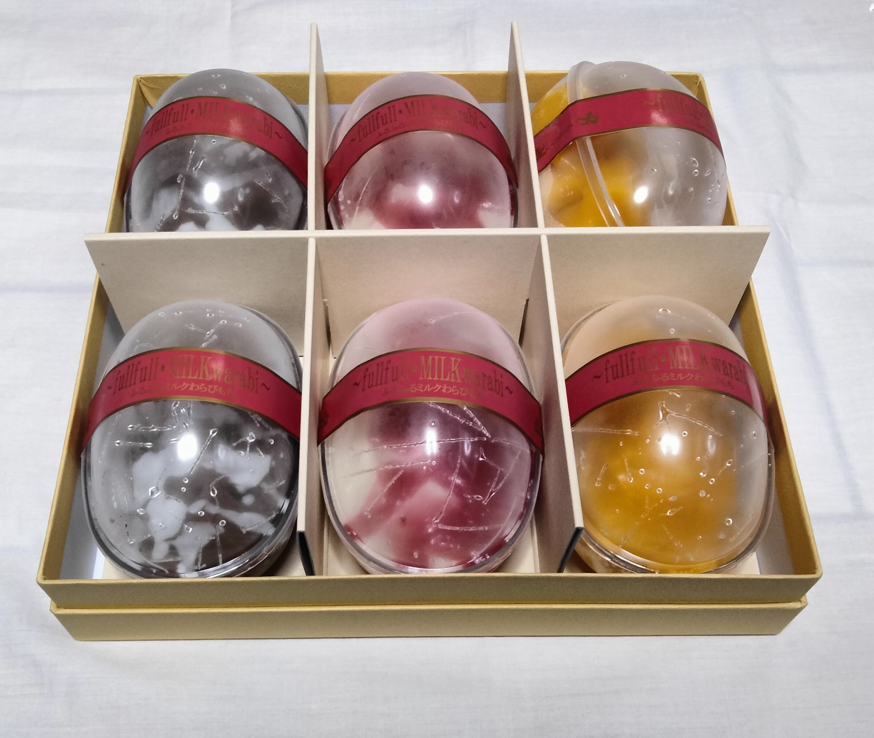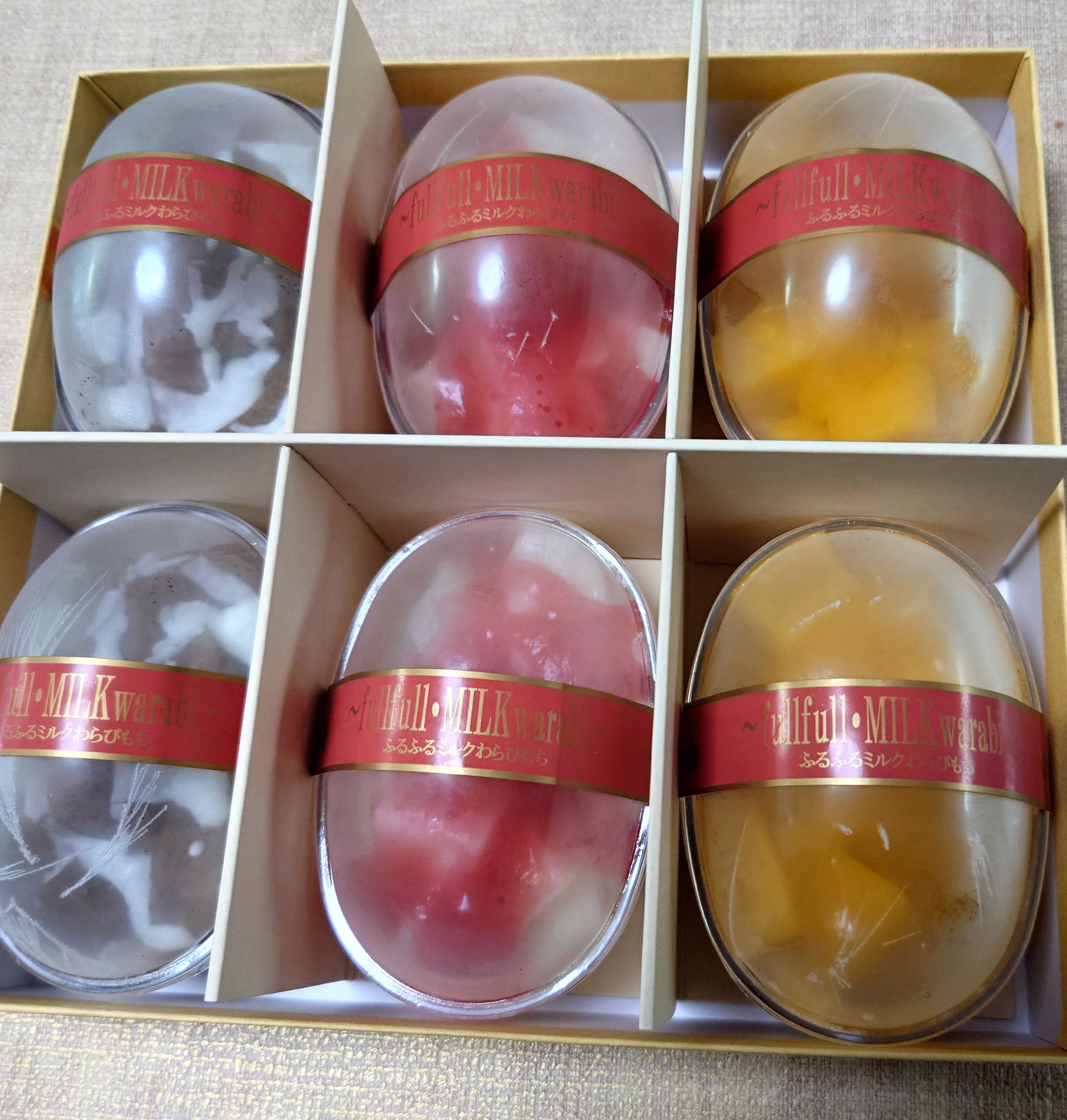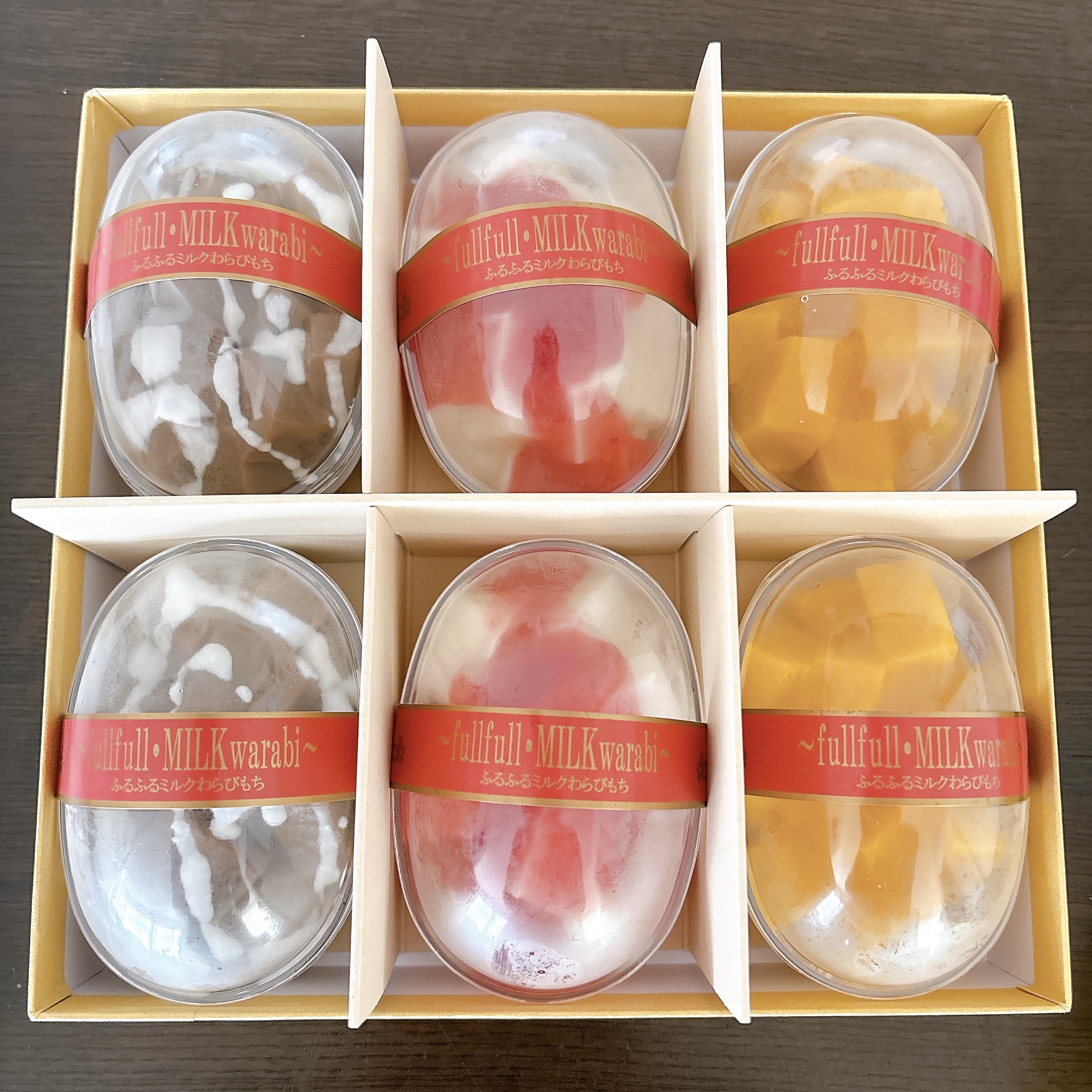 ふるふるミルクわらびもち・6個入り3色詰め合わせタイプ