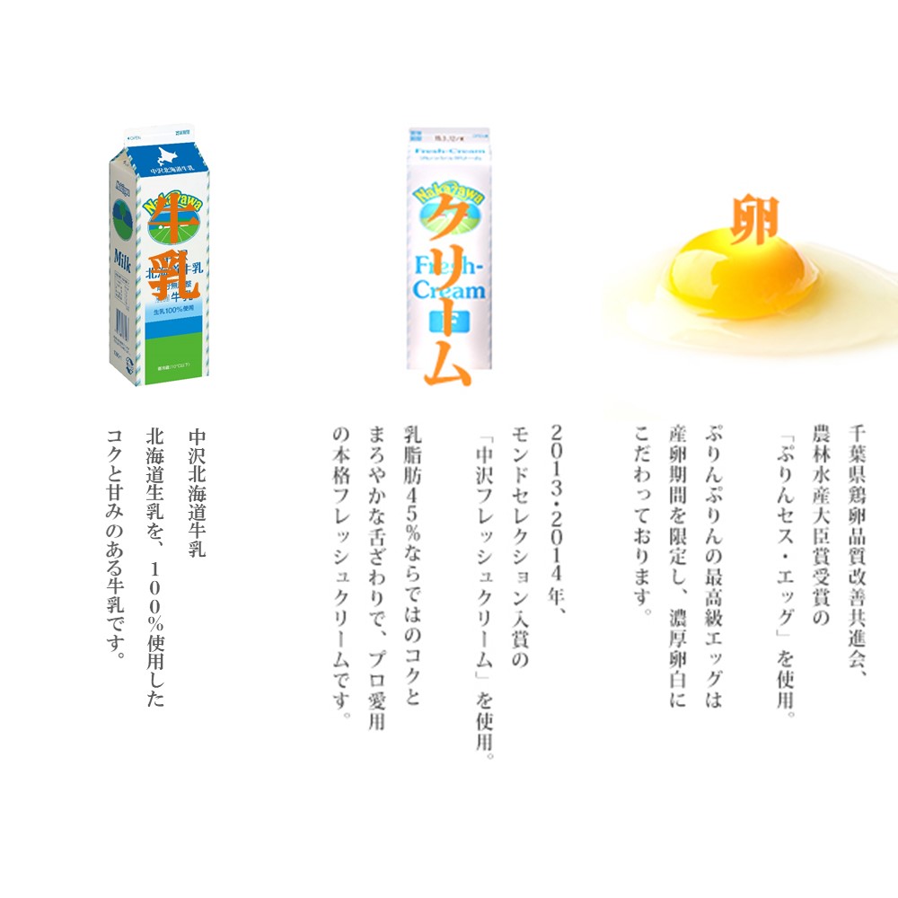 【中沢北海道牛乳】を使用しています。とても甘みのある牛乳で、こちらの牛乳を使用するようになり、砂糖の分量を調整しなおしたくらいのコクと甘みに感動しました。