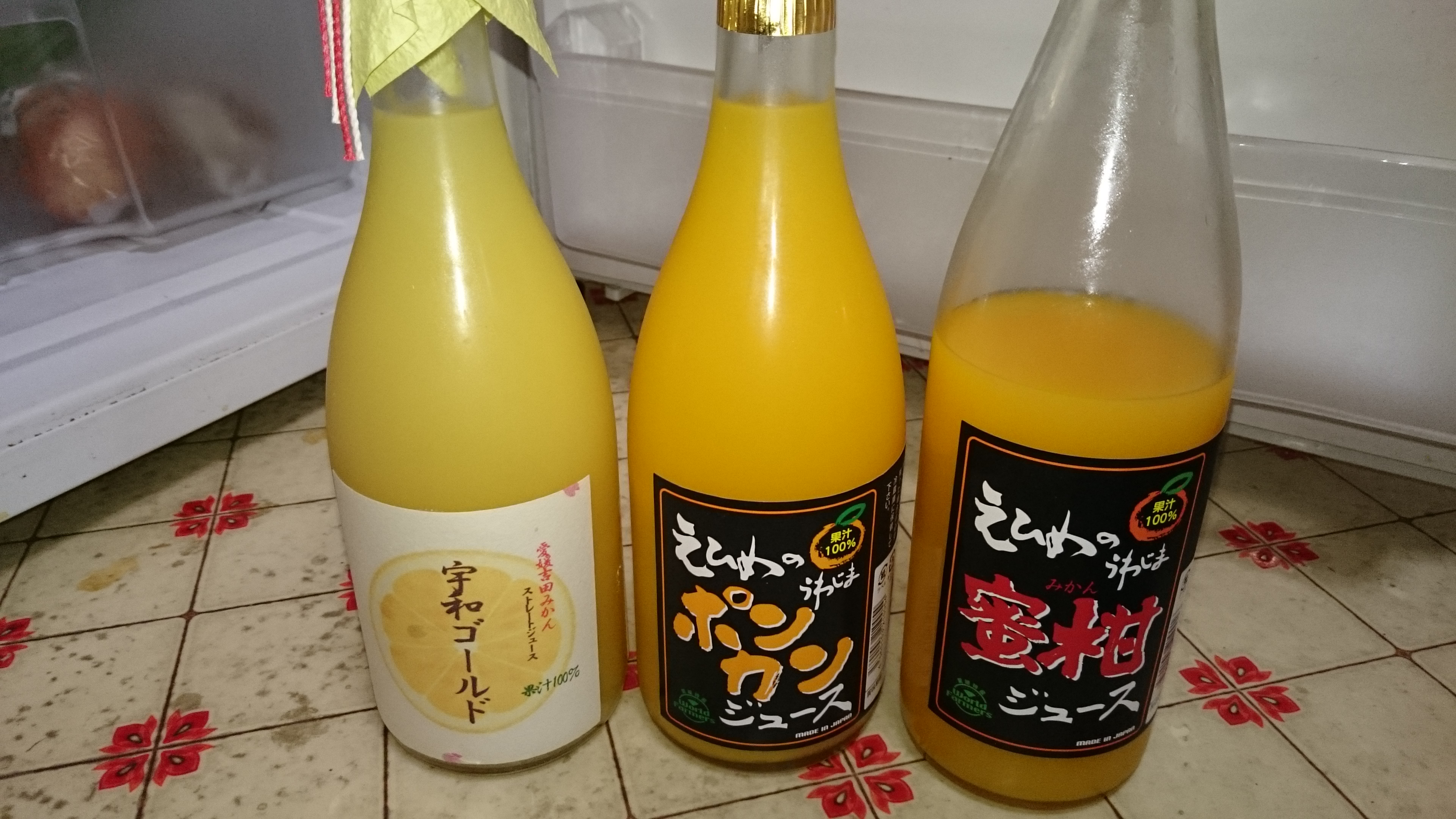 最後にえひめのうわじまポンカンジュースを。先の蜜柑ジュースほどの甘みがなく、酸味もありほどよいお味。外国製オレンジジュースが好きな方はこちらがぴったりです。