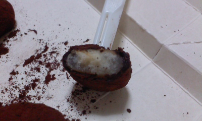 味は、はじめにココア。お子さま仕様ではなく、カカオという感じの甘味のないココアです。次に感じるのはグランマルニエ酒という洋酒の味。そして、豆の素材の味。順番に口に広がるので、ゆっくり味わいたい一品です。大人の味なので、お子さまには不向きですが、チョコの苦手な方へのバレンタインの贈り物に最適だと思いました。お酒が強めに感じられるので、男性への手土産にも向いていると思います。もちろん、コーヒーの好きな方は喜ばれると思います。