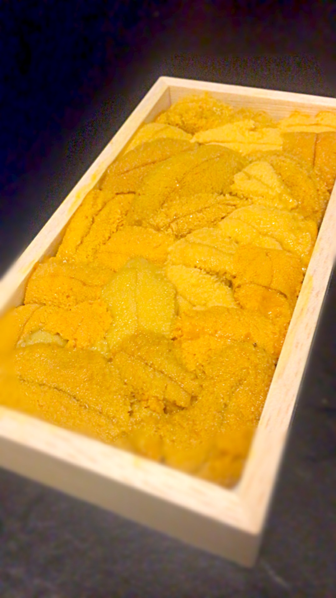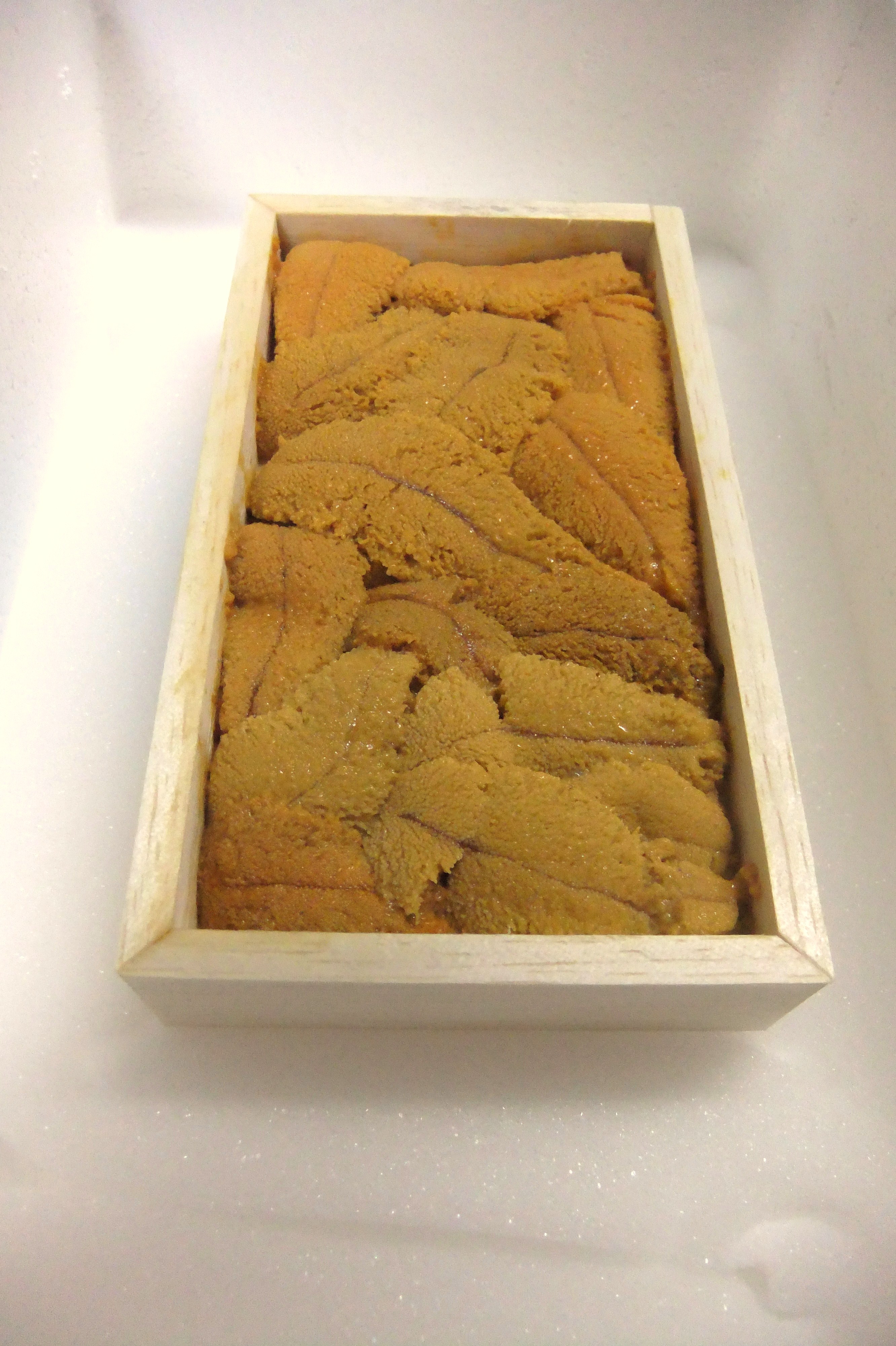 木箱を開けると丁寧に並べられた色の良いウニ。そして、まず思ったことが一粒一粒がとても大きい!お箸で一粒すくってみると、大粒なだけでなく厚みもしっかりあり、そこらのウニとは違って重みすら感じる程でした(笑)