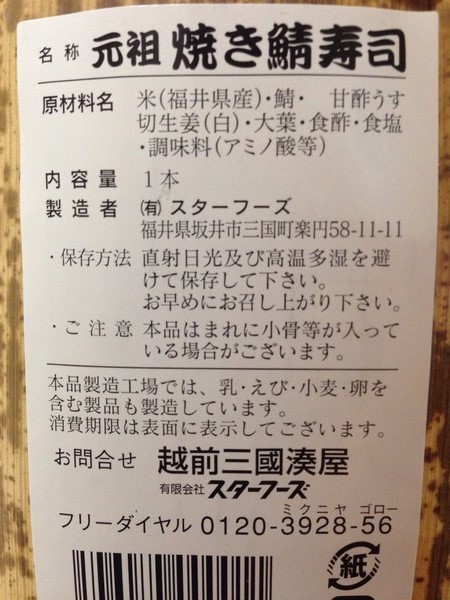 元祖『焼き鯖寿司』1本・約290g