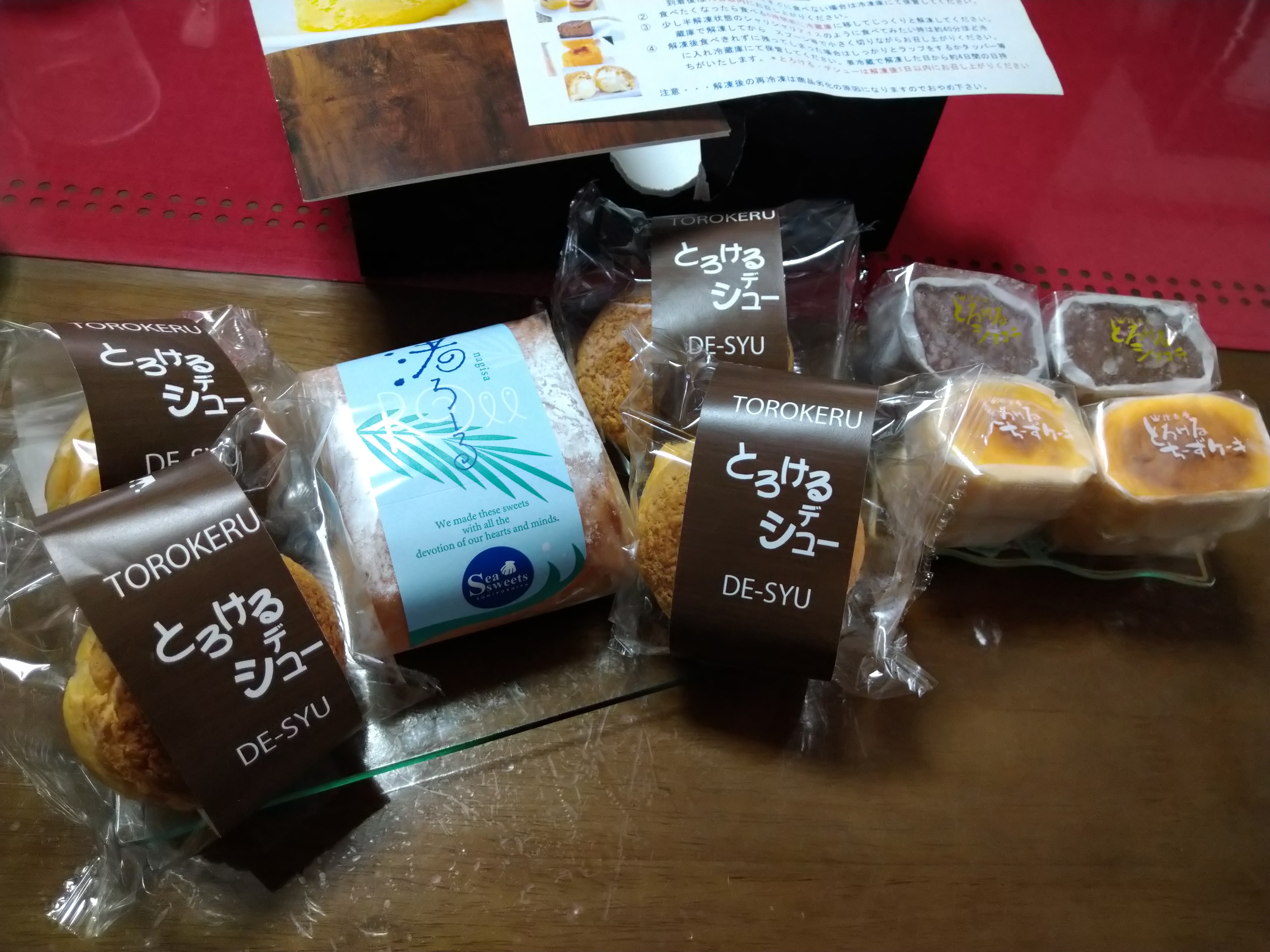 指定どおりに冷凍便で届きました。ナマモノというシールが貼ってあり、焼き菓子ではなく生菓子扱いなんだなーと思いました。シンプルな黒のボックスに赤い文字でsea sweets と貝のマークがあり熱海っぽさが感じられました。
