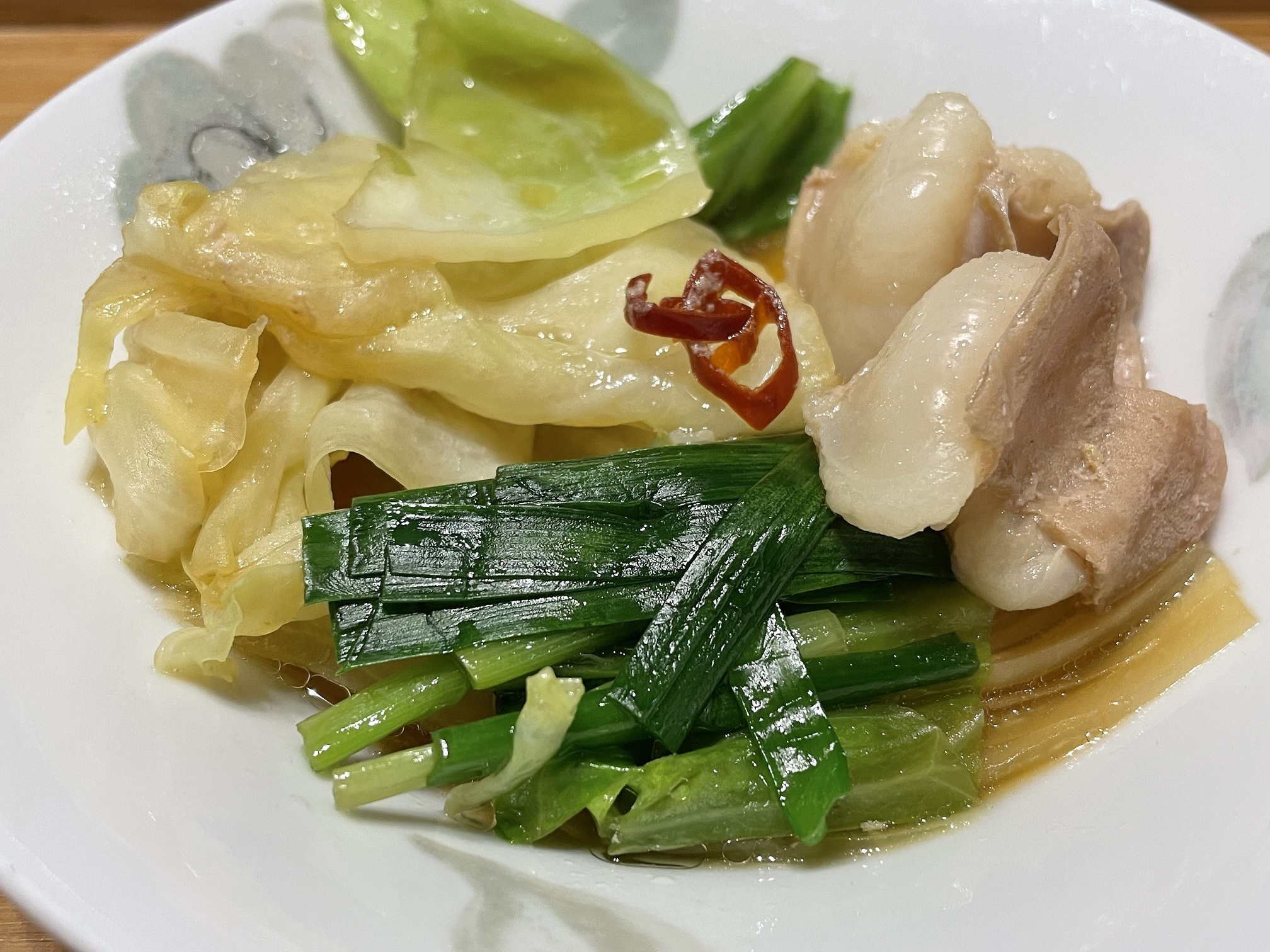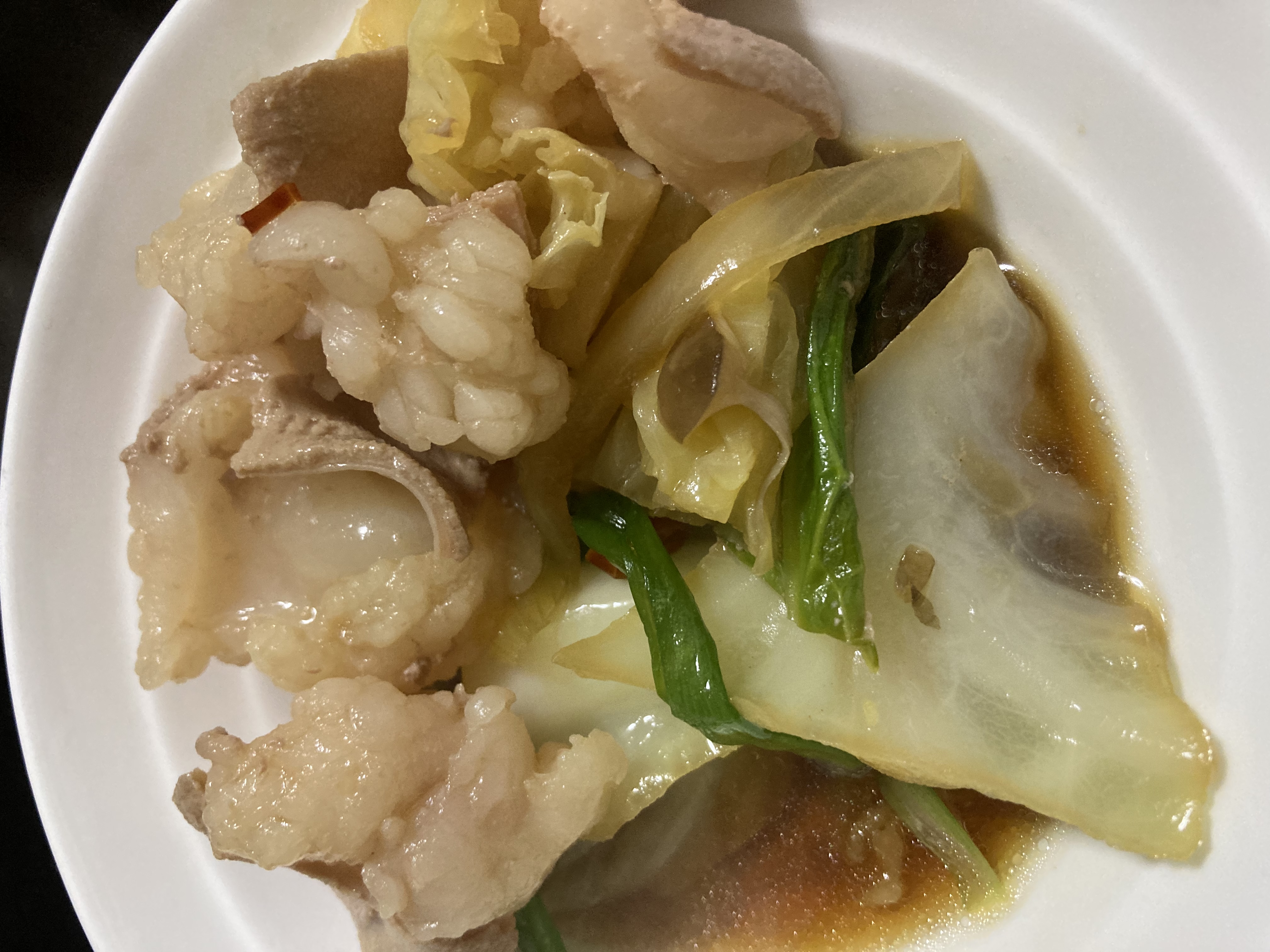 一口飲んでみると、少し濃いめな気がしましたが、野菜やもつとの相性はとても良かったです。