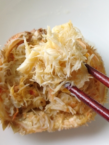 肝心の蟹身は、レンチンしたとは思えないふっくら感。パサパサしてない、そのままの新鮮な蟹に感動しました。