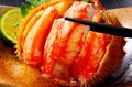 毛ガニ甲羅盛は、毛ガニを一尾丸ごと捌いて文字通り甲羅に盛り付けています。