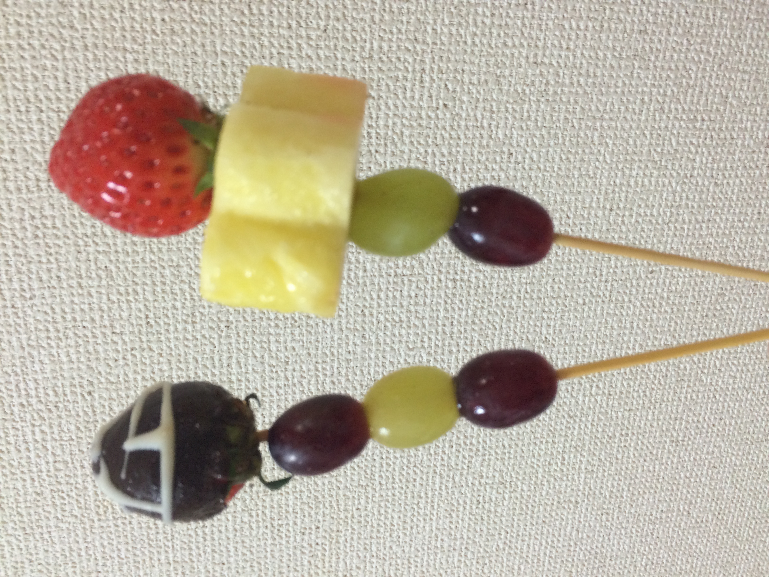 ぶどうもとても美味しいです。たくさんぶどうが付いている串が取り合いになったほどです。