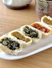 信州の郷土食「おやき」、作り方はそのまま、食べやすいふた口サイズにしました。小さくても具材たっぷり!