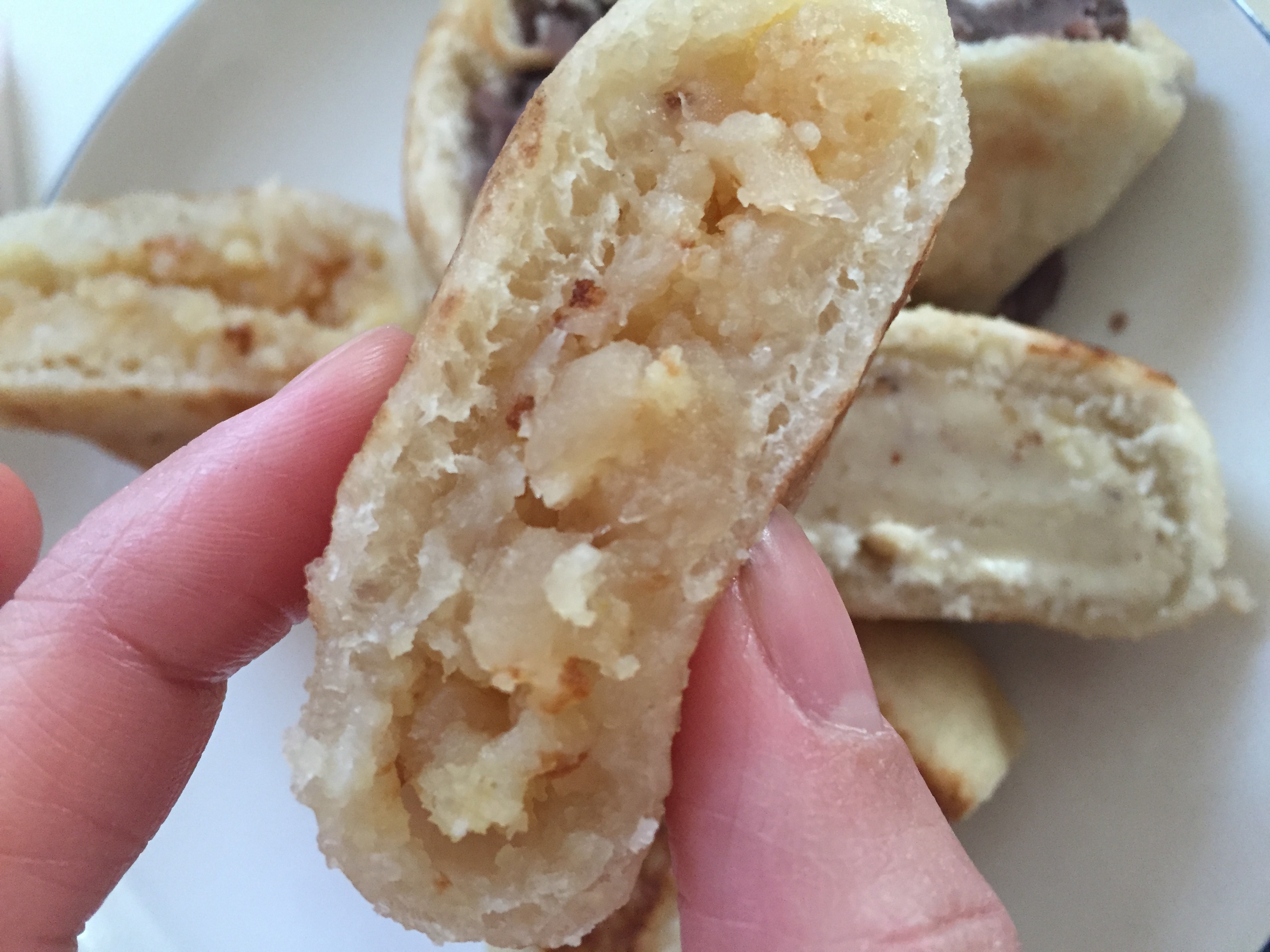 こんがり焼き色をつけた後に油で揚げ、蒸しています。もちもちとした食感とカリっとした食感をお楽しみいただけ人気です。