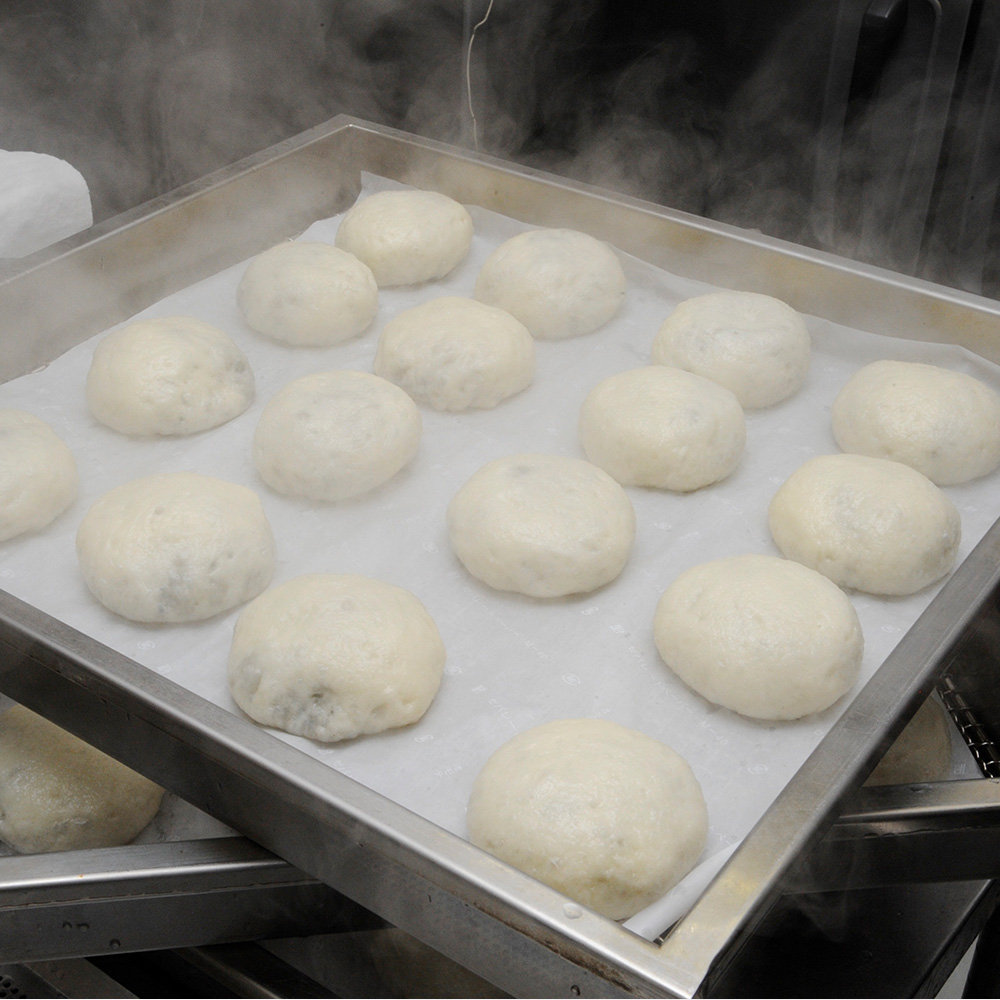 ふっくら蒸し上げた皮。ふんわりとした食感と小麦粉の甘み、野菜の素朴な味わいがおいしいです。