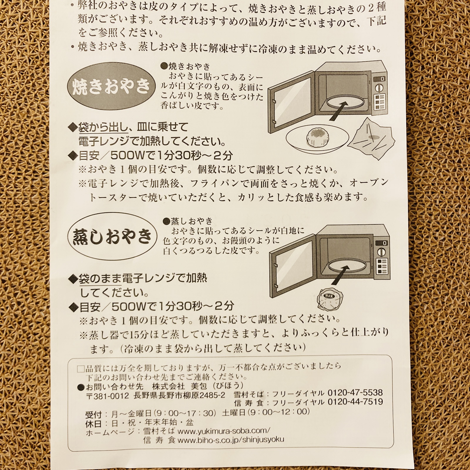 レンジで温めるのとはまた違ったもちもちのおやきでした。