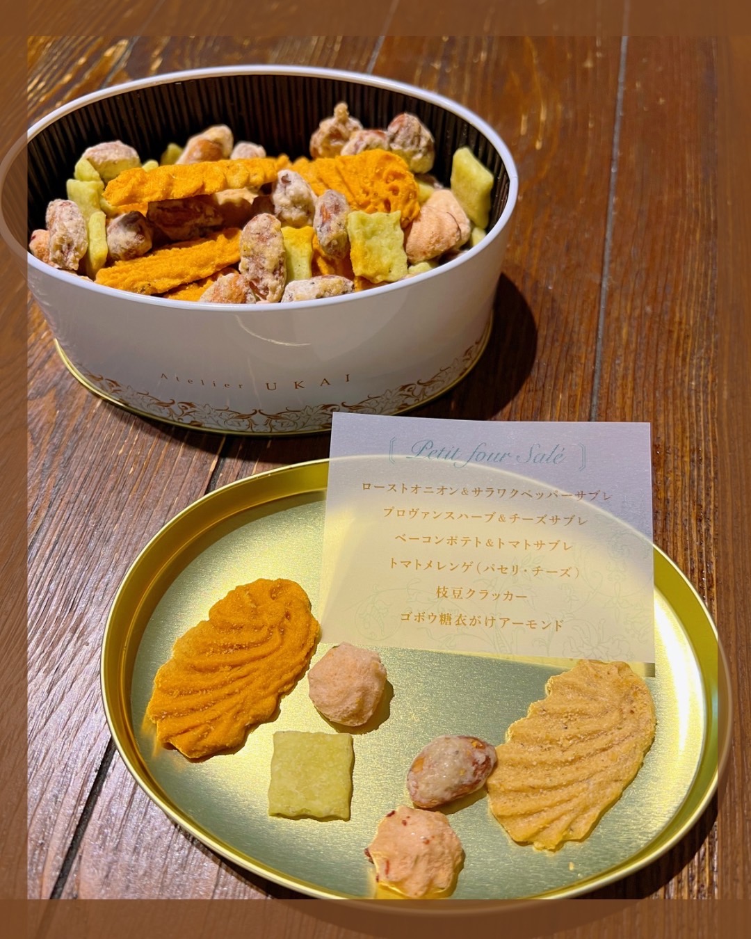 「スパイスは厳選されたものを独自にブレンドし、煎って香りを出してから加える」、「野菜のピュレは一手間加えてコクを出してから用いる」など、うかいグループのレストランで培った発想を生かした料理のような味わいが魅力のクッキーです。