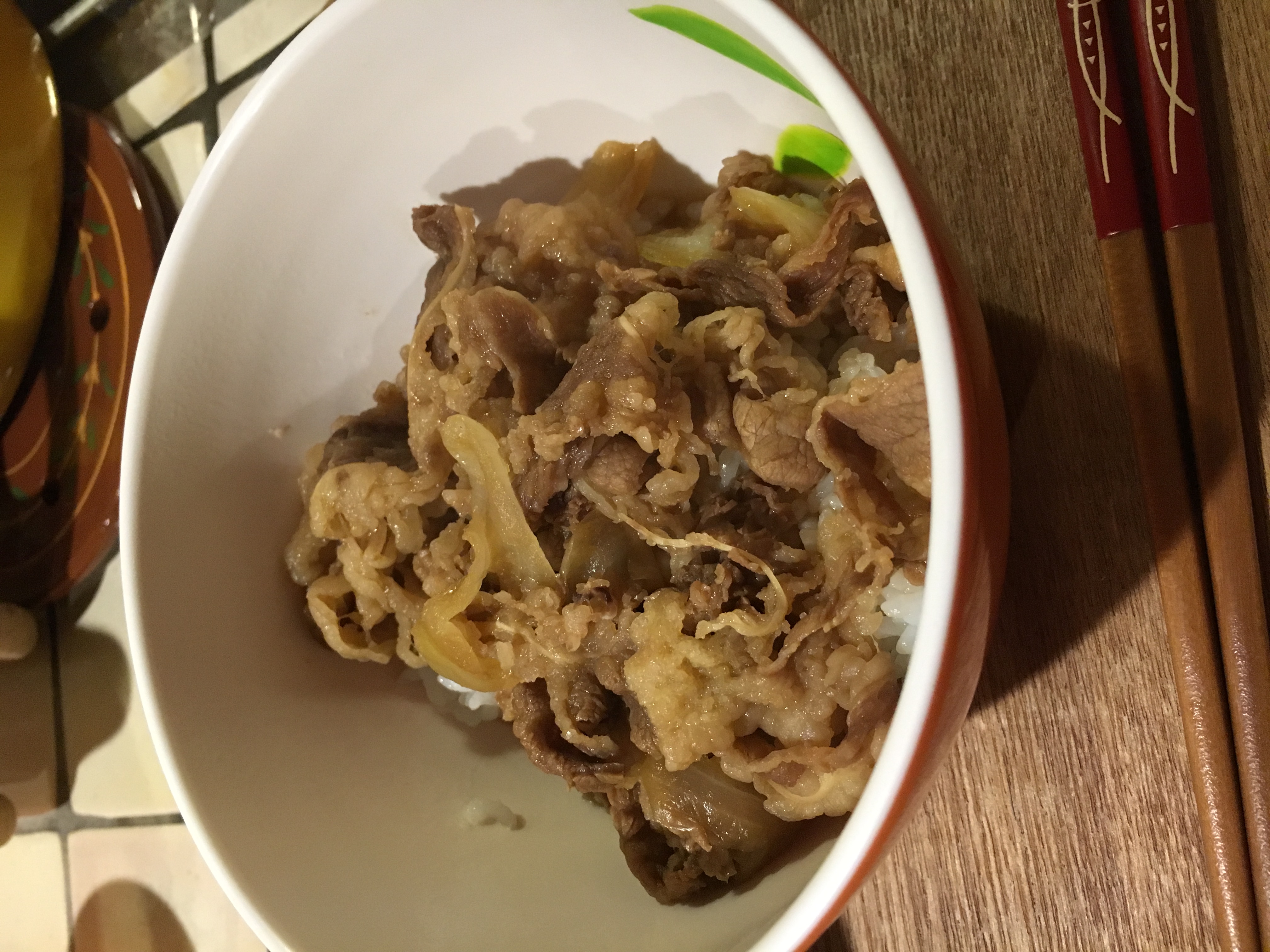 吉野家に行かなくてもご飯さえ炊いておけば、湯煎でたった5分で出来ます。(電子レンジでもOK)