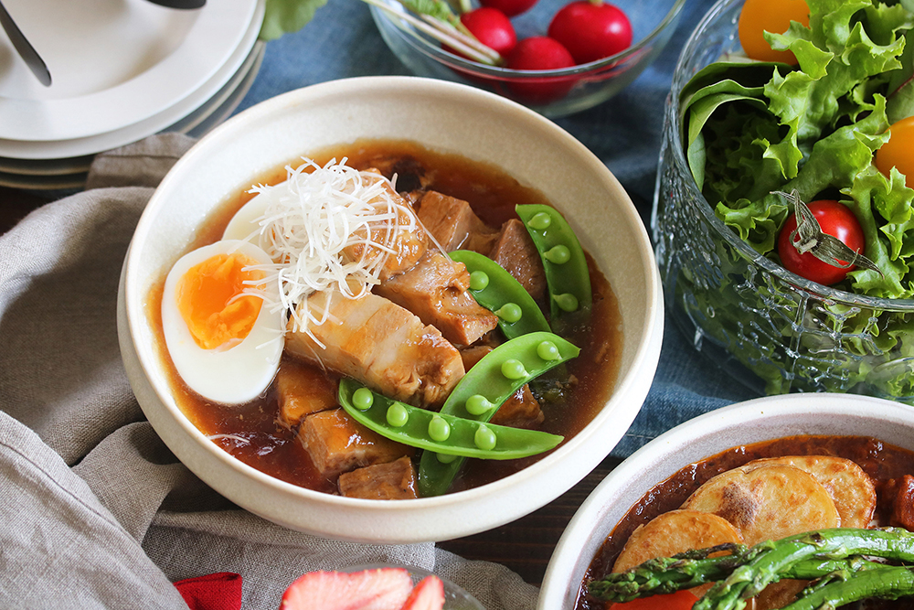 厳選された豚肉を原料に、丁寧に灰汁を取りながら手間をかけてゆでこぼし、長時間じっくりと炊き上げた脂身はヘルシーです。上品な薄味に仕上げておりますが、肉の臭みはまったくなく、口当たりの良い柔らかな肉は、さすが日本料理の総料理長が手作りで仕込んだと納得の、舌にとろける味わいです。ぜひご堪能くださいませ。