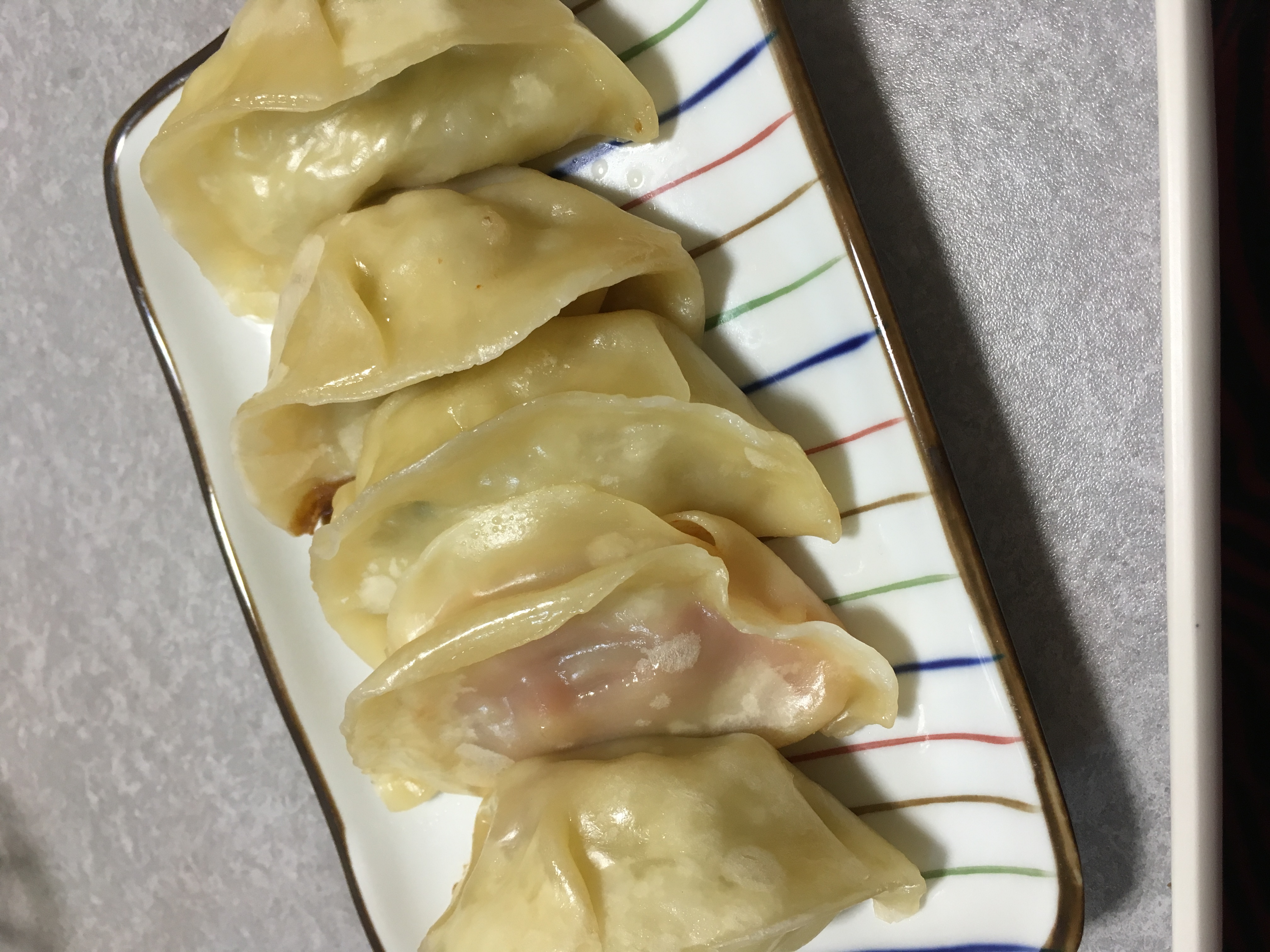 皮はモチモチしており分厚いんですが、中の具がきちんと透けて見えました。餃子1つ1つがとても大きくて食べごたえがあります。