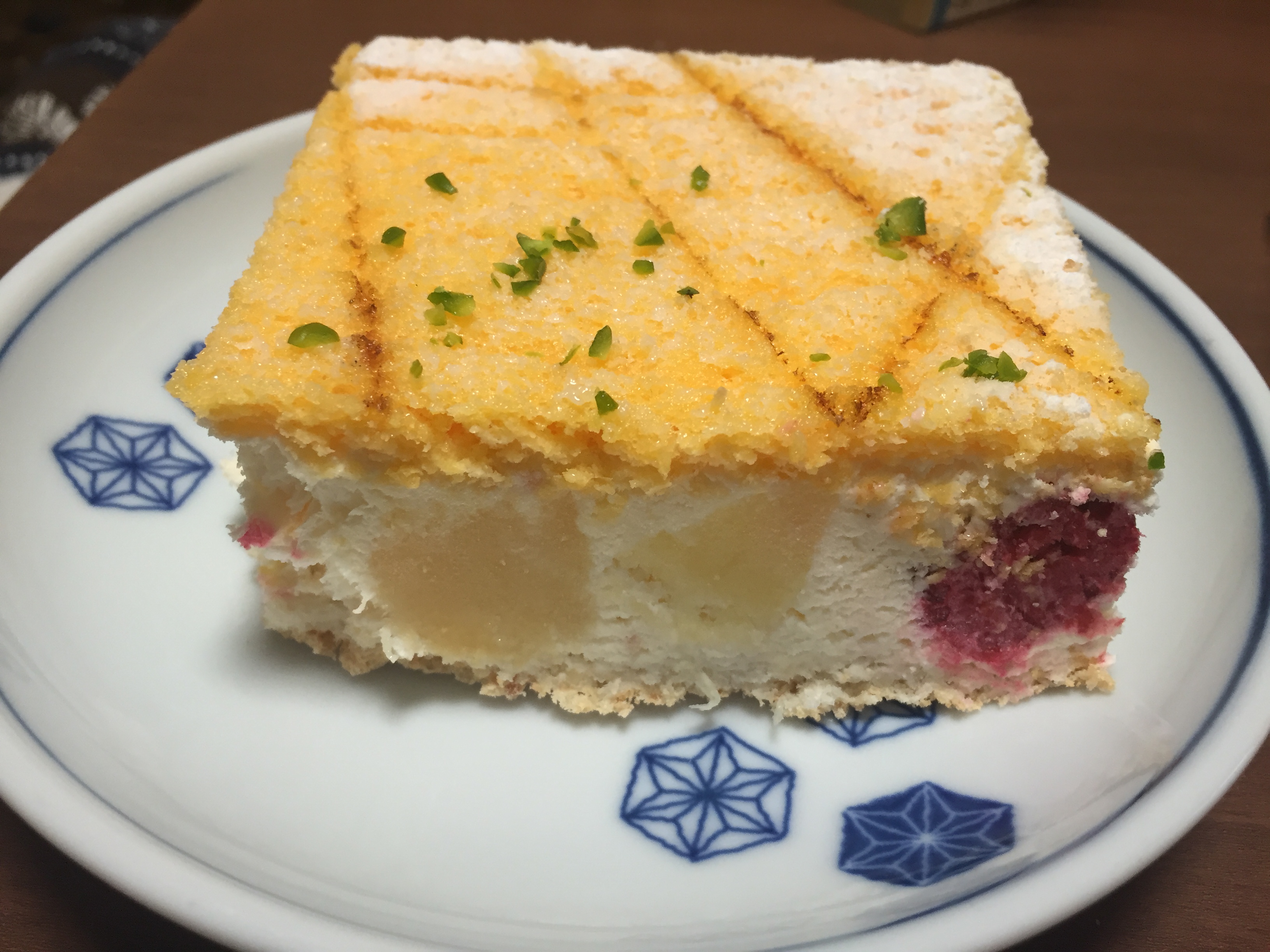 そしてなんといっても、3歳になったばかりの娘も美味しいといっておかわりするほど食べやすいケーキでした。生クリームの中にフランボワーズと桃が入っているのも気に入っておりました。