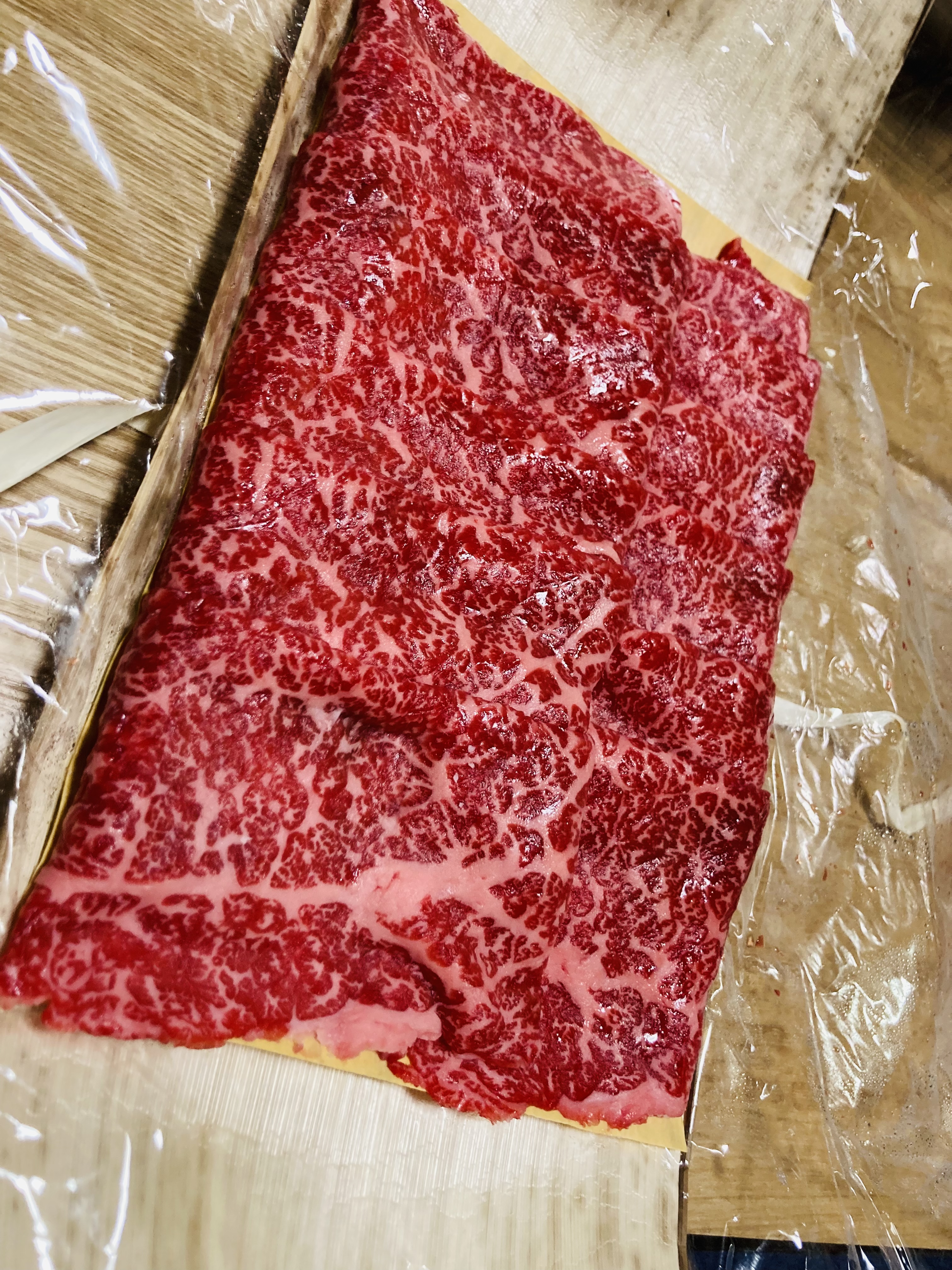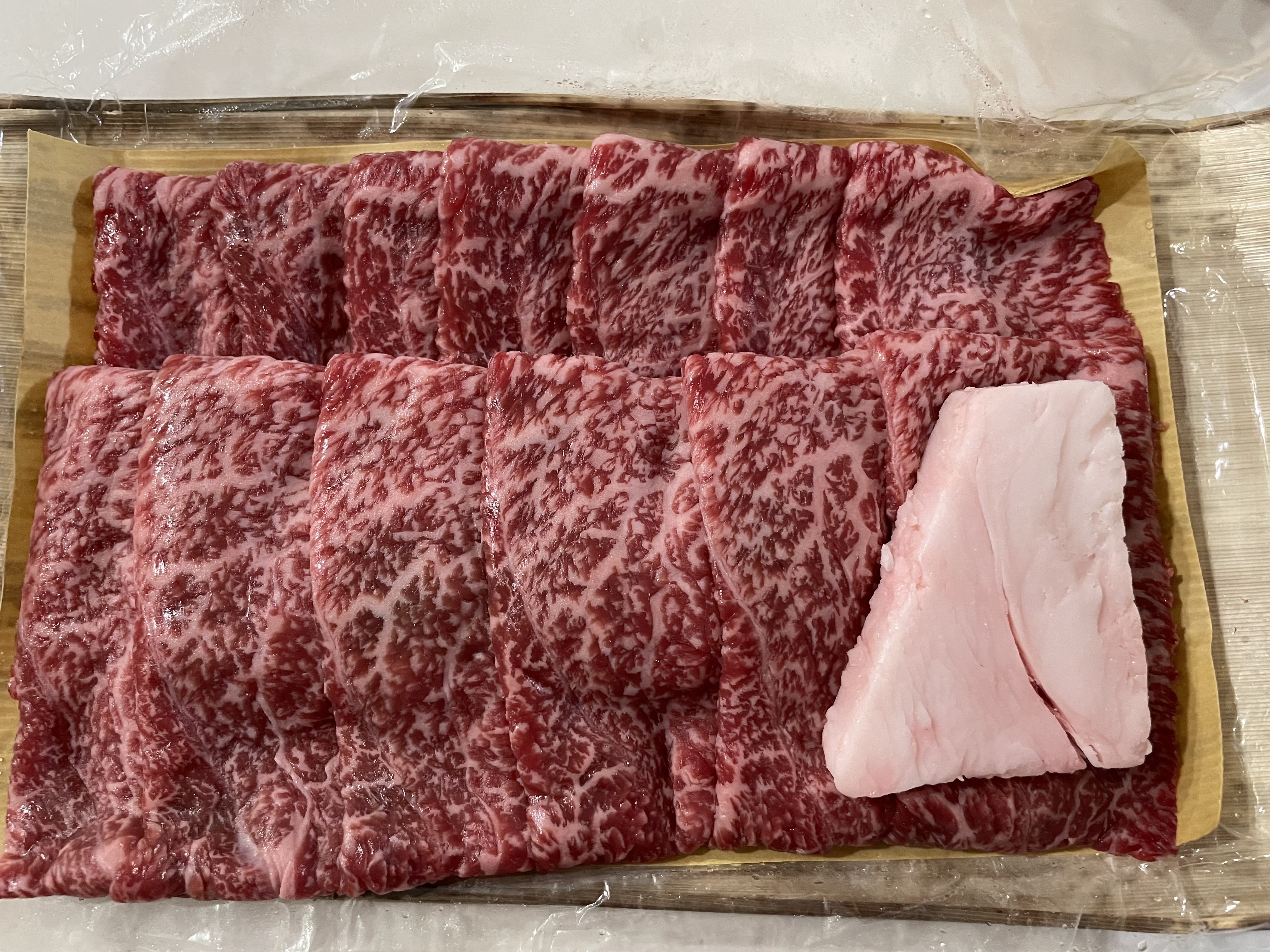 すき焼きでこんなに美味しいモモ肉(赤身)ってあるんだと、感激しました。これも米沢牛ならではですね。