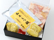 クリーム色の綺麗な化粧箱にもつ2パック、スープ1袋、ラーメン2玉、唐辛子小袋1パックが詰められていました。