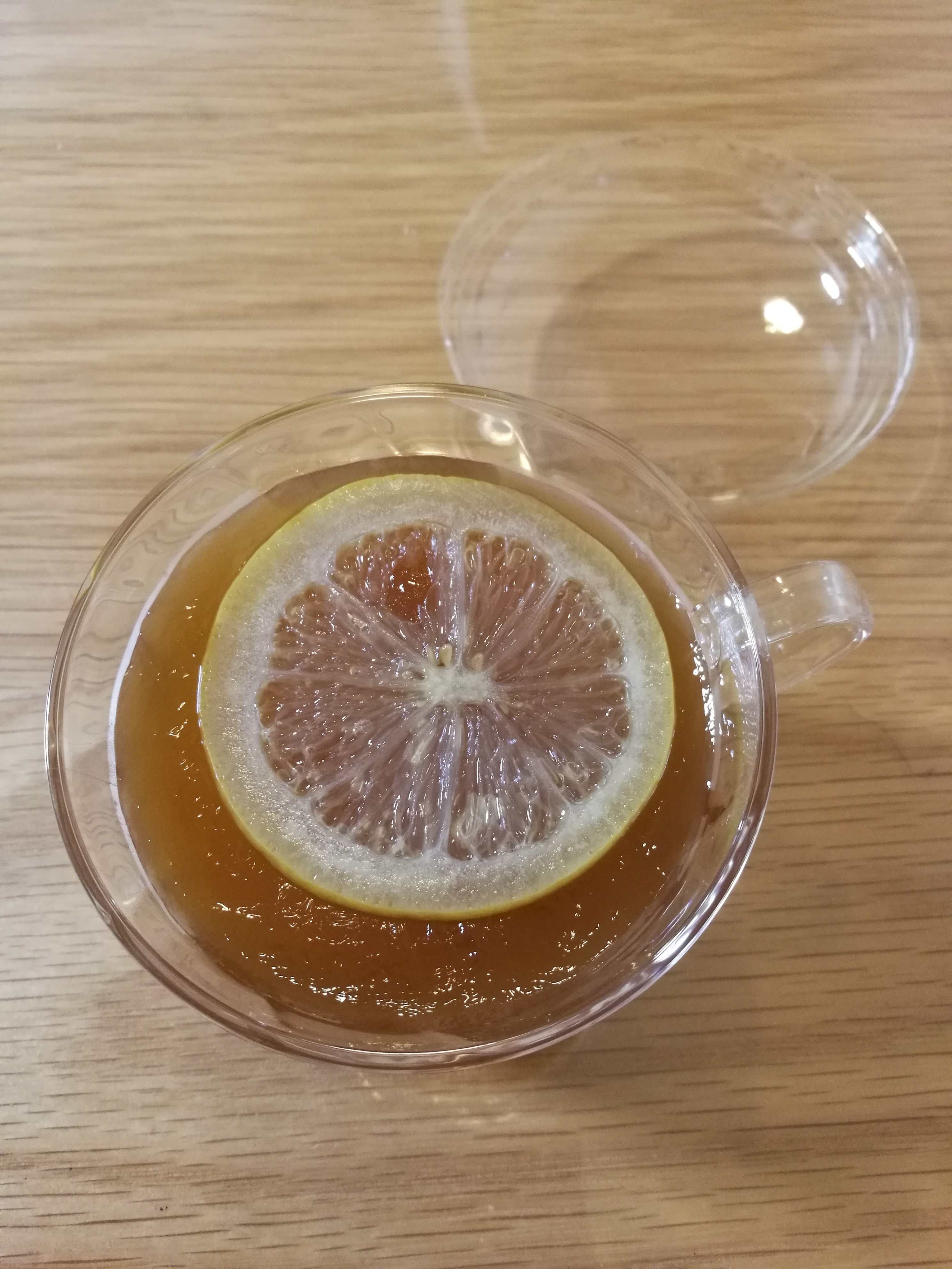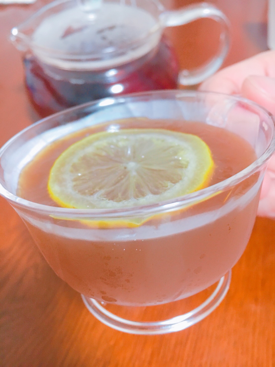 レモンティー味は爽やかなレモンの味がひろがり、すっきりとした甘み。上に乗っているスライスレモンも一緒に食べると美味しかったです。