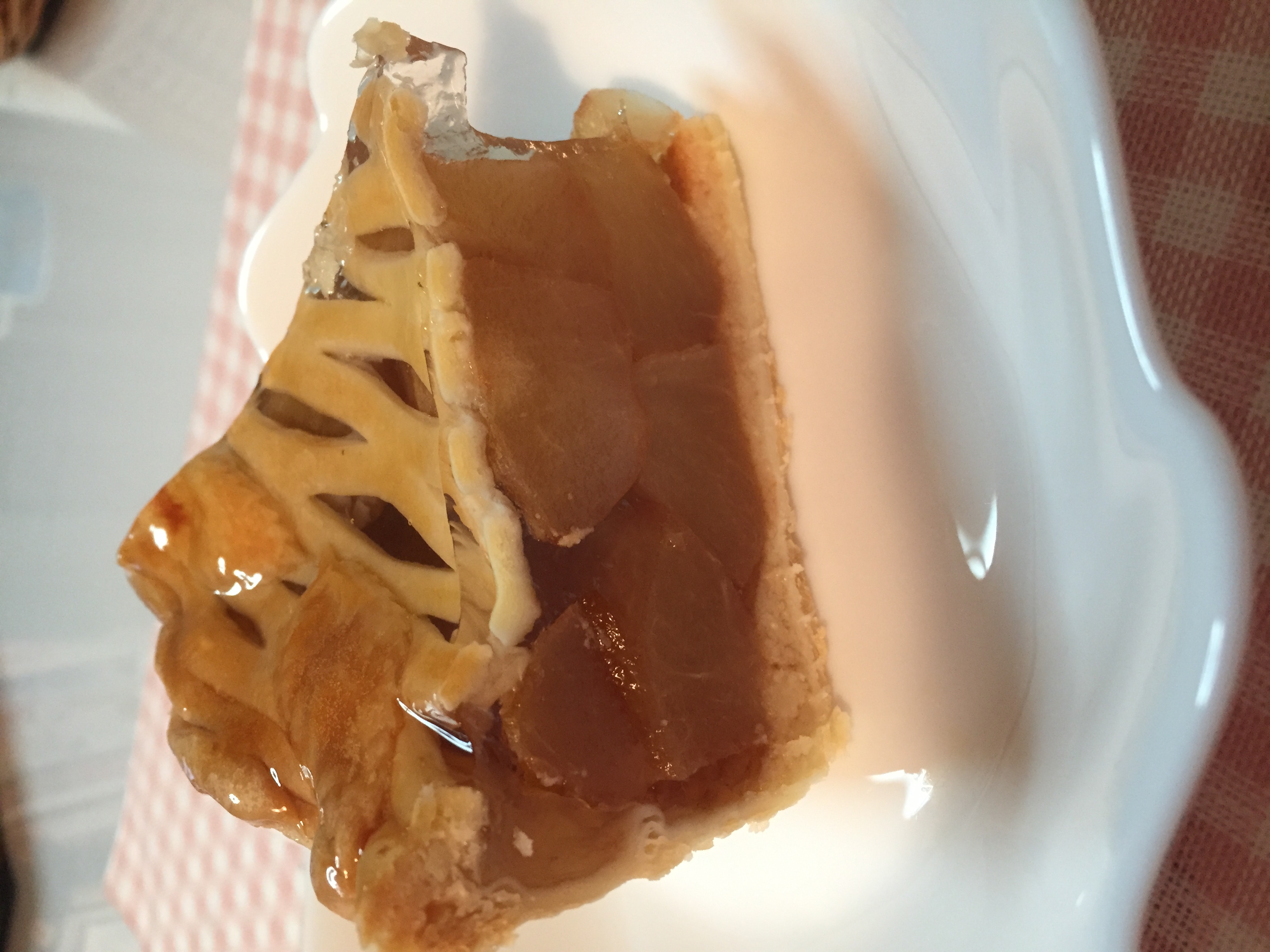 どんだけ小さく切ったら一人前になるのかなと考えながら切ったら、パイめちゃ薄め、アップルごろごろほぼりんごでした♪