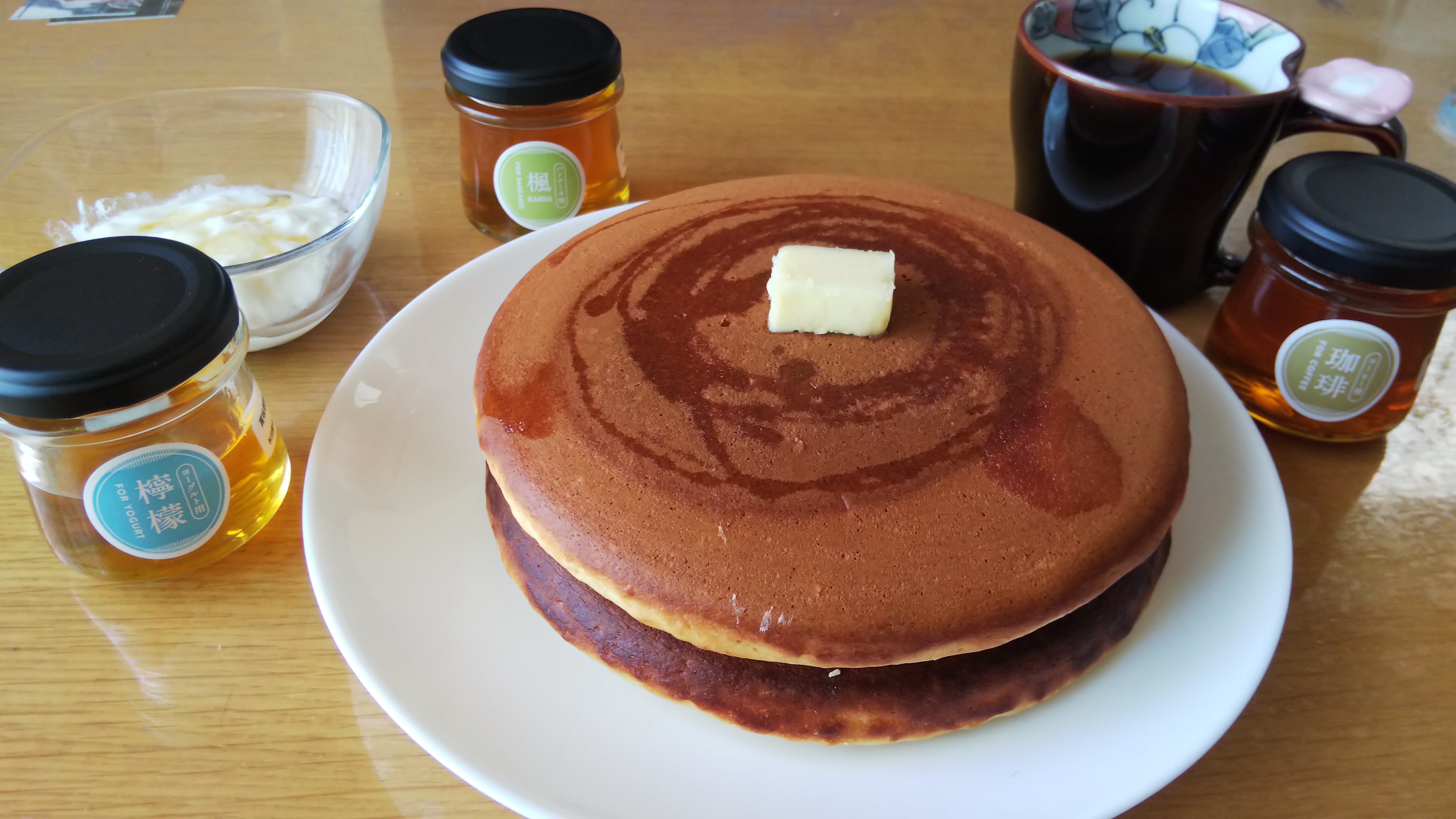 美味しいハチミツのためにパンケーキを焼きました。