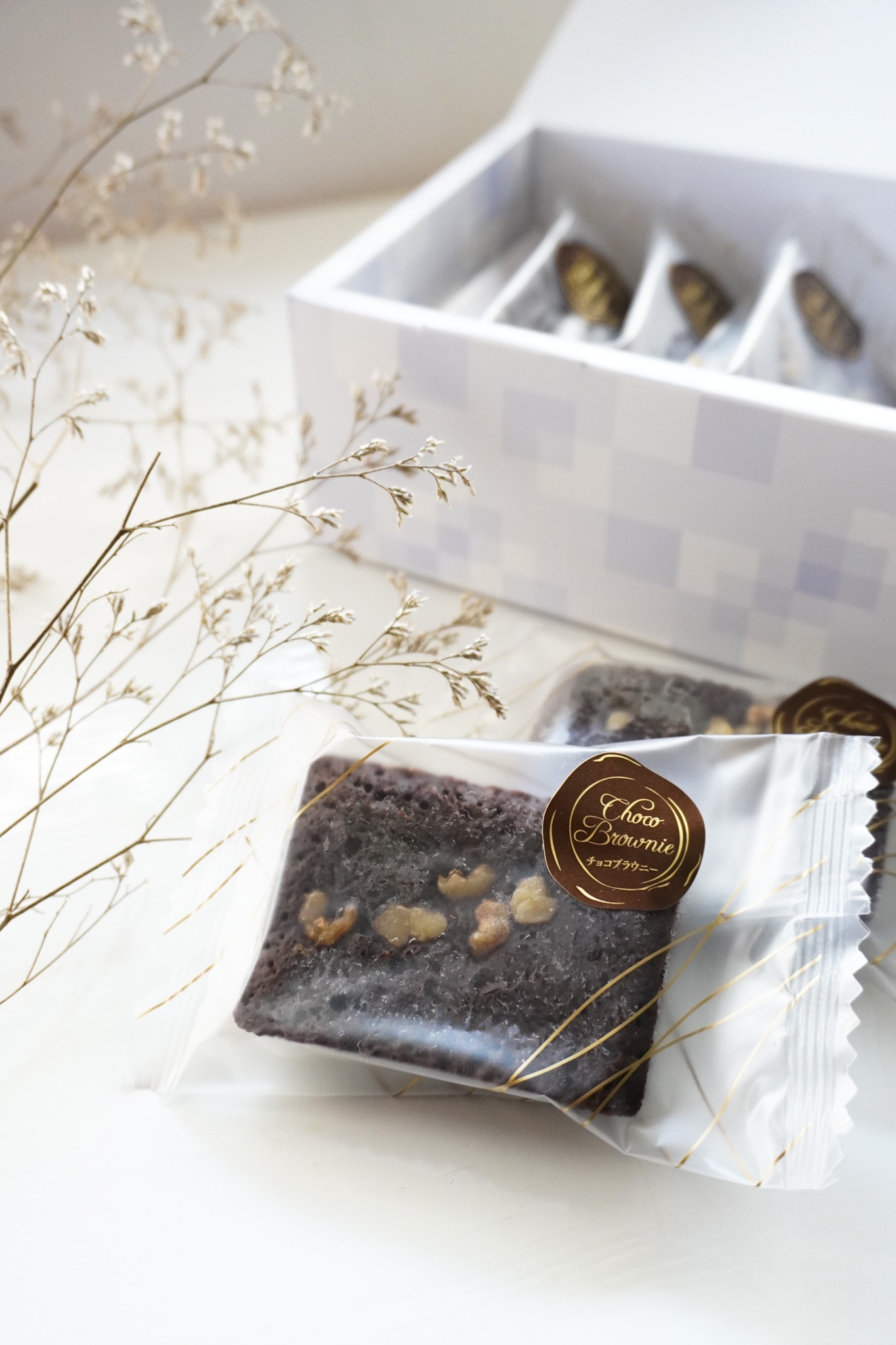 チョコレートをそのまま焼き上げたような濃厚な味わいの「チョコレートブラウニー」。西アフリカ産のチョコレートを通常の2倍使用することで、味わい豊かな深みのあるチョコレートを堪能できます。さらにカリフォルニア産のローストしたクルミを練りこむことで、香ばしい風味が口いっぱいに広がります。バレンタインやホワイトデーの贈り物には勿論、ちょっとした贈り物にも最適です。