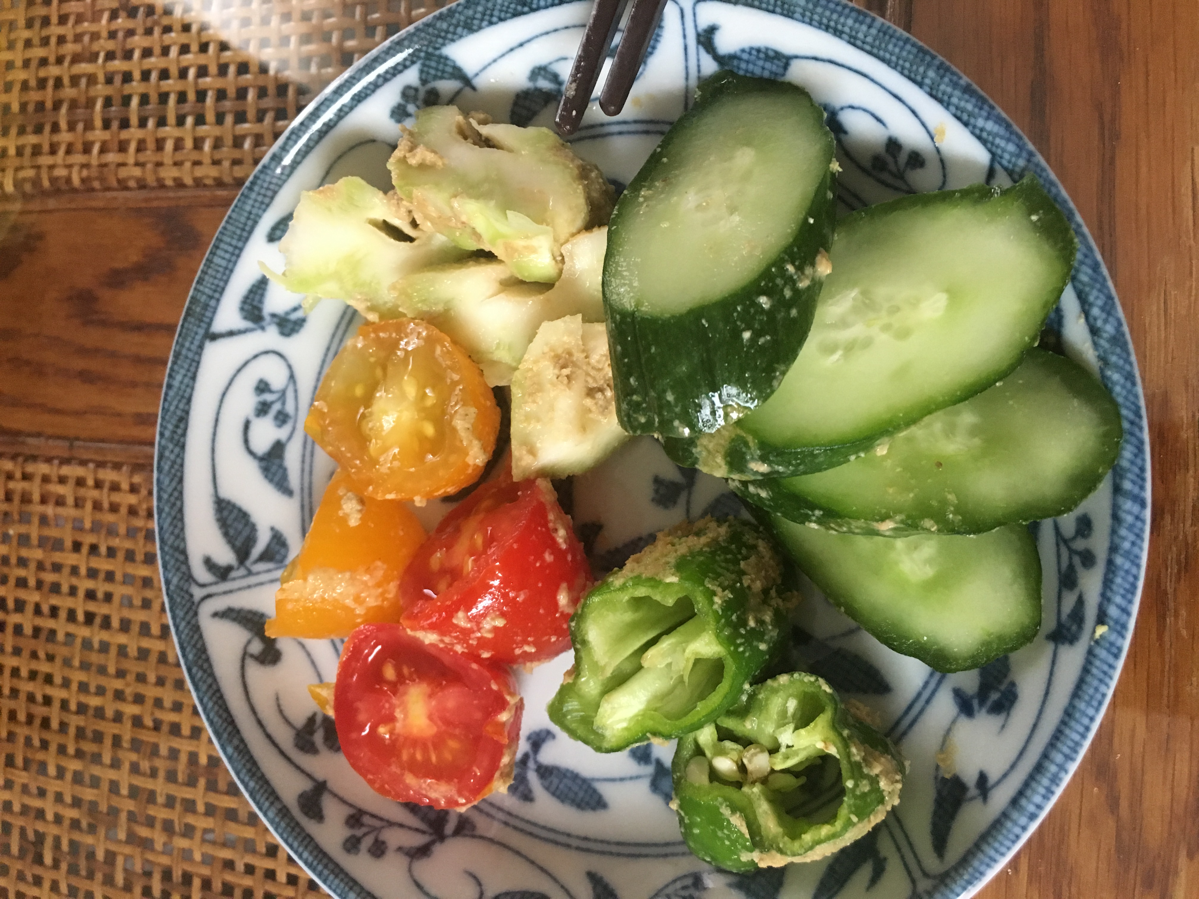 きゅうり、プチトマト、そしてブロッコリーの芯、細いピーマン、つけてみました。ブロッコリーの芯は皮をむいて縦半分に切りそのまま、細いピーマンは種も栄養があるのでそのまま頂きたいため洗ってそのまま、待ちどおしい思いで1日。洗わずにキッチンペーパーで軽く拭くようにしました。どれも本当に美味しかったのですが、ヒットがプチトマトとブロッコリーの芯でした!アボカドとカリフラワーを今日は買ってきてつけてみます!