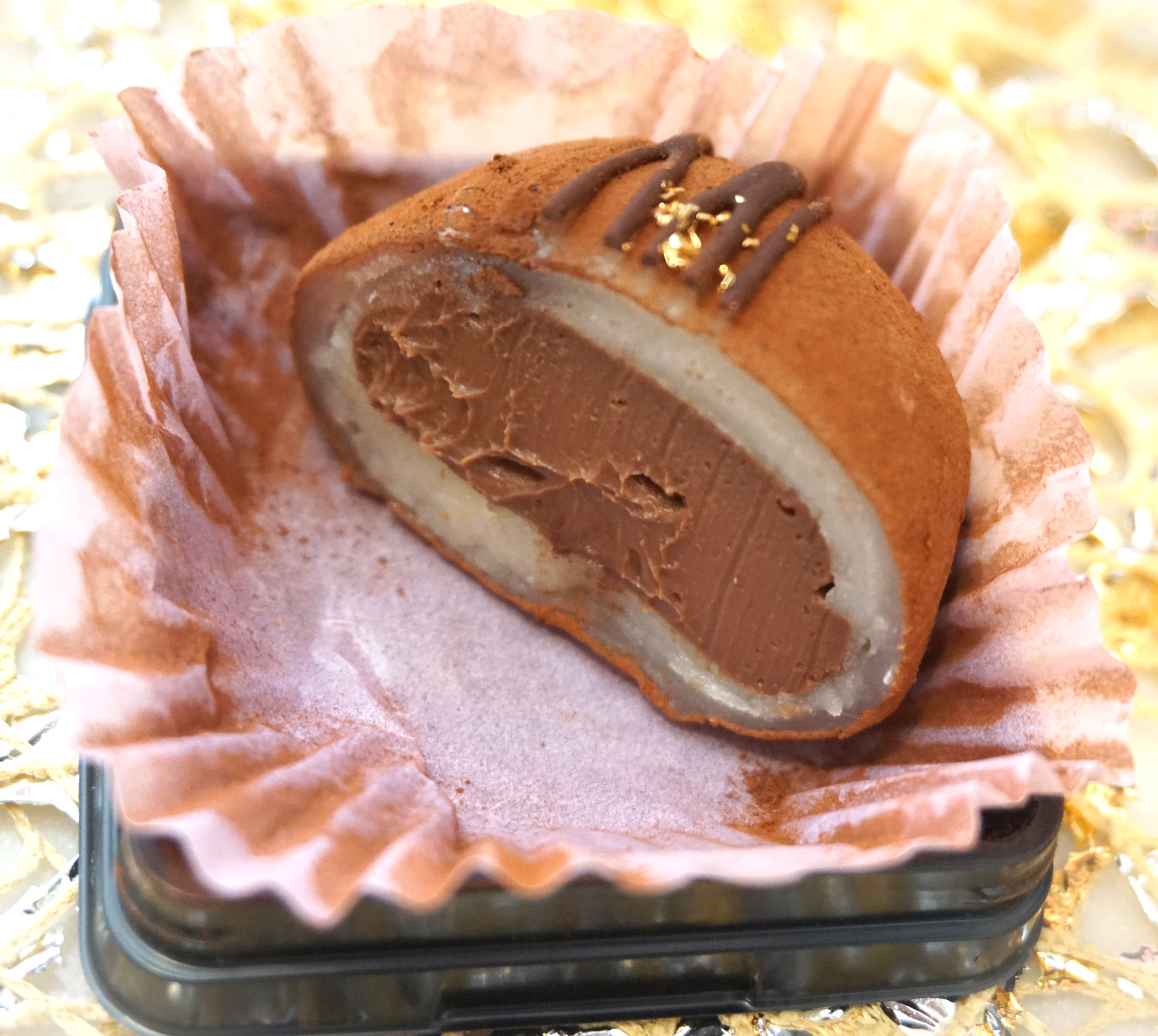 北海道産生クリームを使用している生チョコが白餡と羽二重餅で包み込まれています。