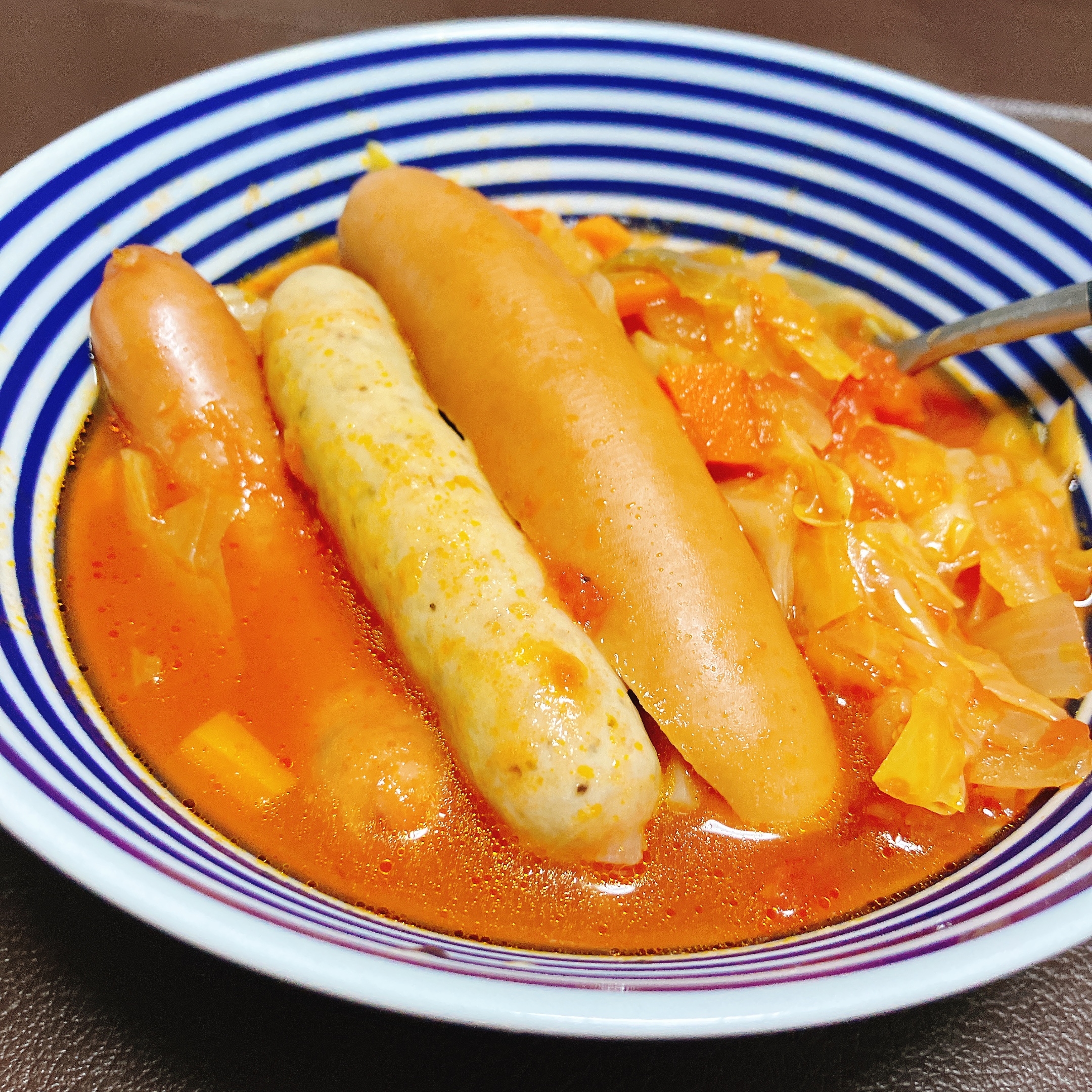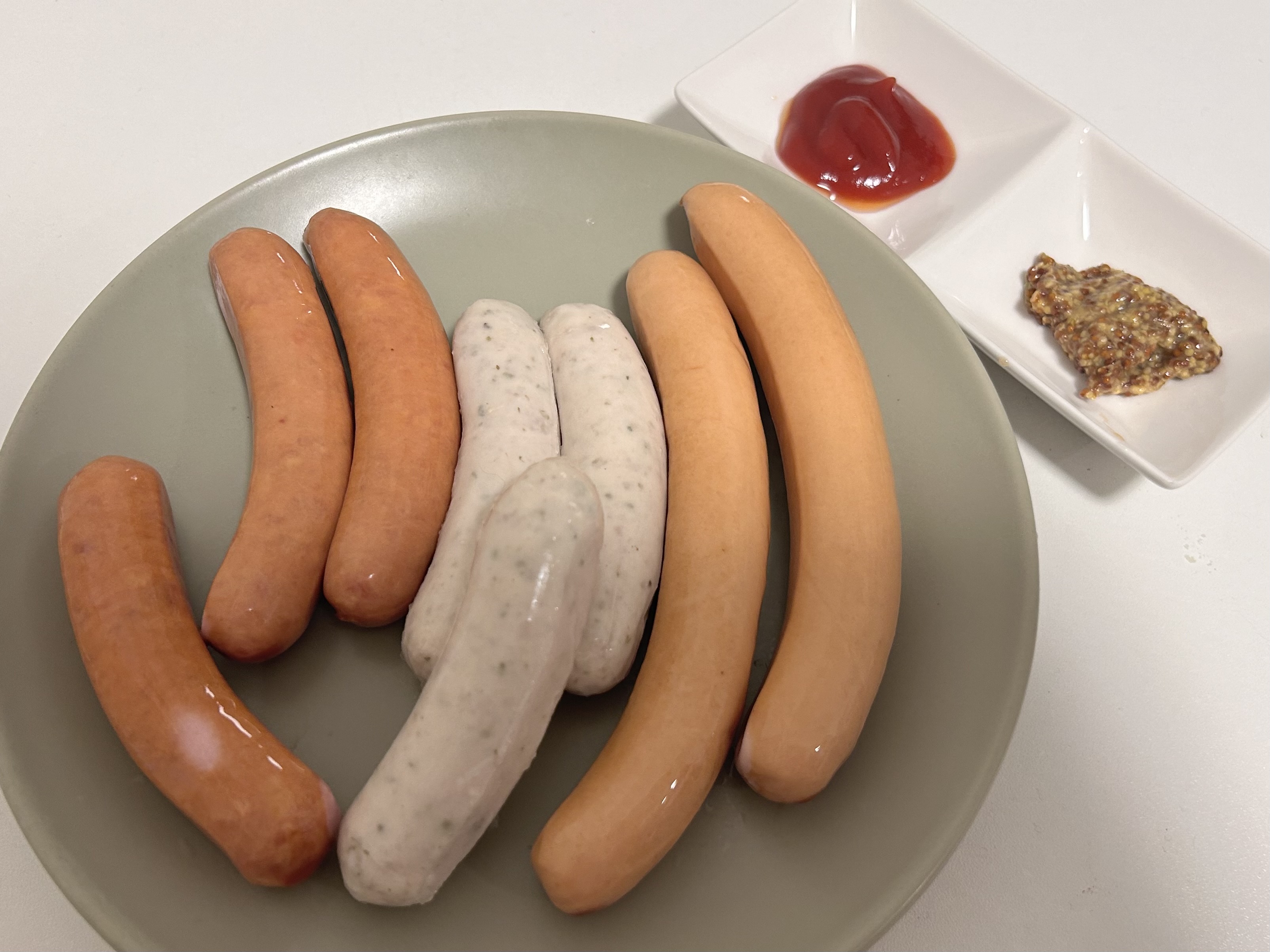 ホワイトウインナー(無塩せきウインナーソーセージ)は、見た目が白い珍しいウインナーでした。さっぱりとした味わいでそのまま焼いて食べても美味しかったですし、ミネストローネに入れてもよく合いました。柔らかめの食感と優しい味わいは初めての経験で、癖になる味わいでした。