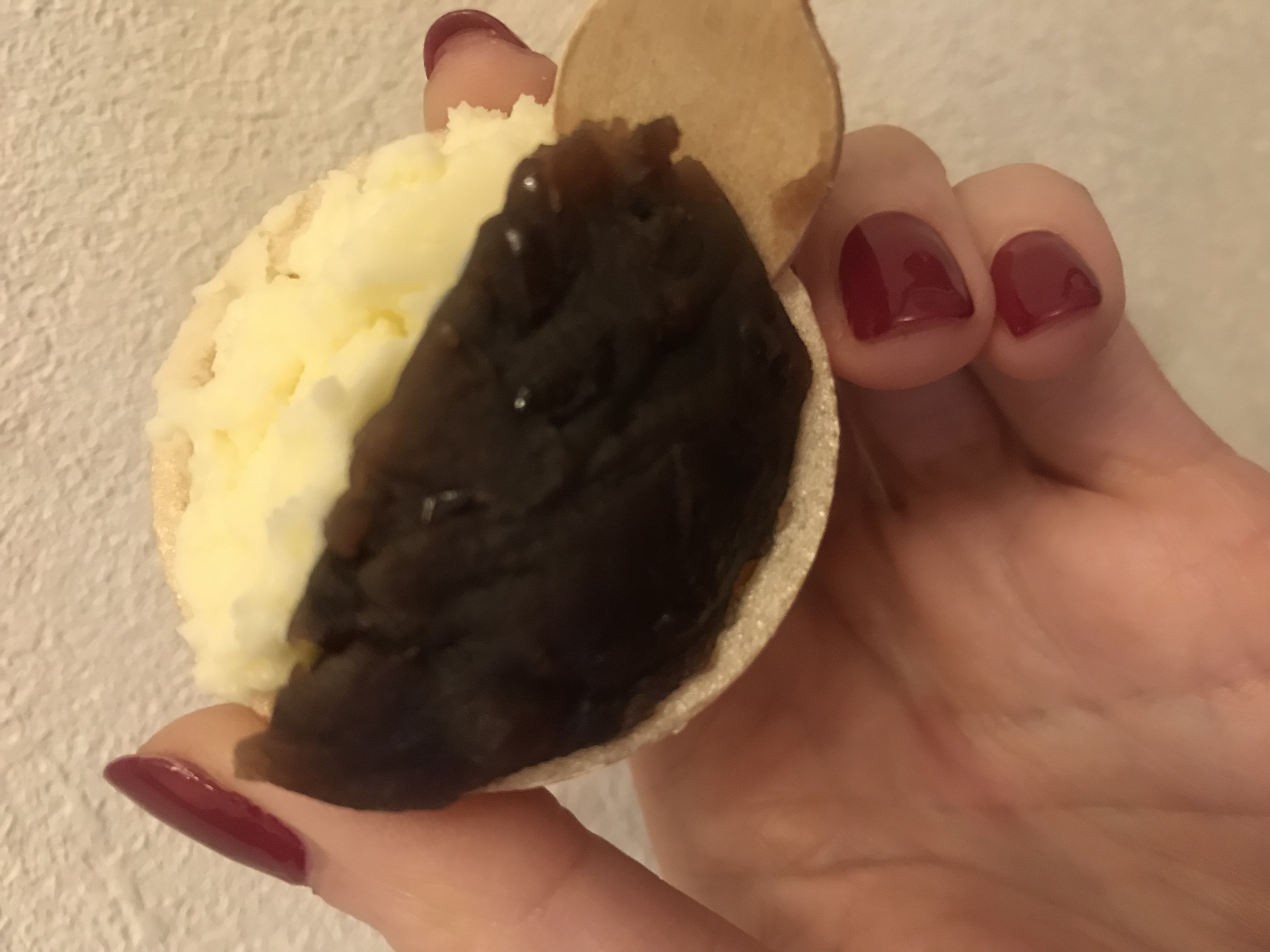 最中は軽くてサクサク。このサクサクを楽しむためにも食べる直前にあんことクリームをつめて、12対8のおすすめの食べ方で試食してみました。