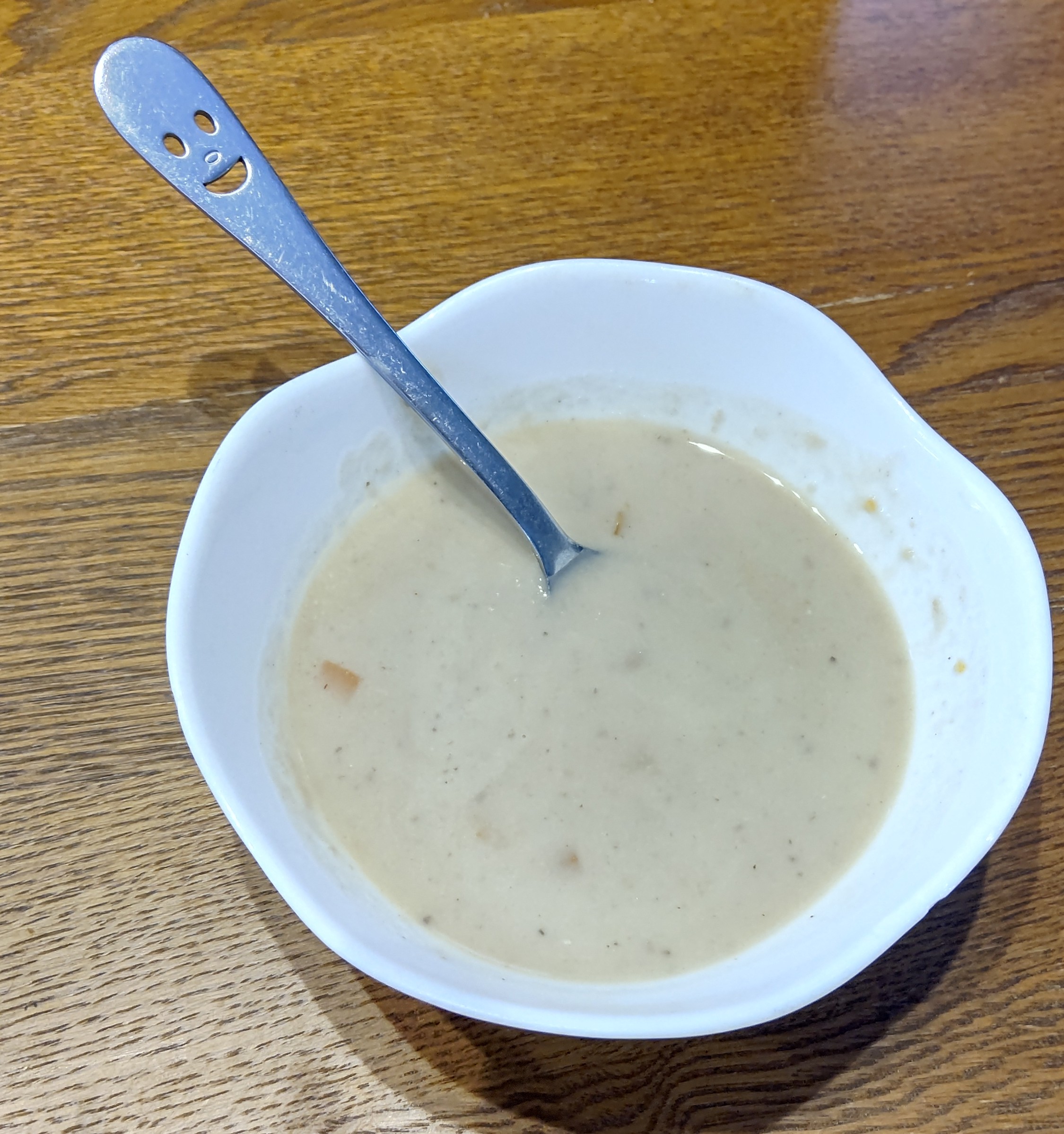 残しがちな葉物野菜や鶏肉を刻んで入れてたのですが、一緒にペロリと食べてくれました。