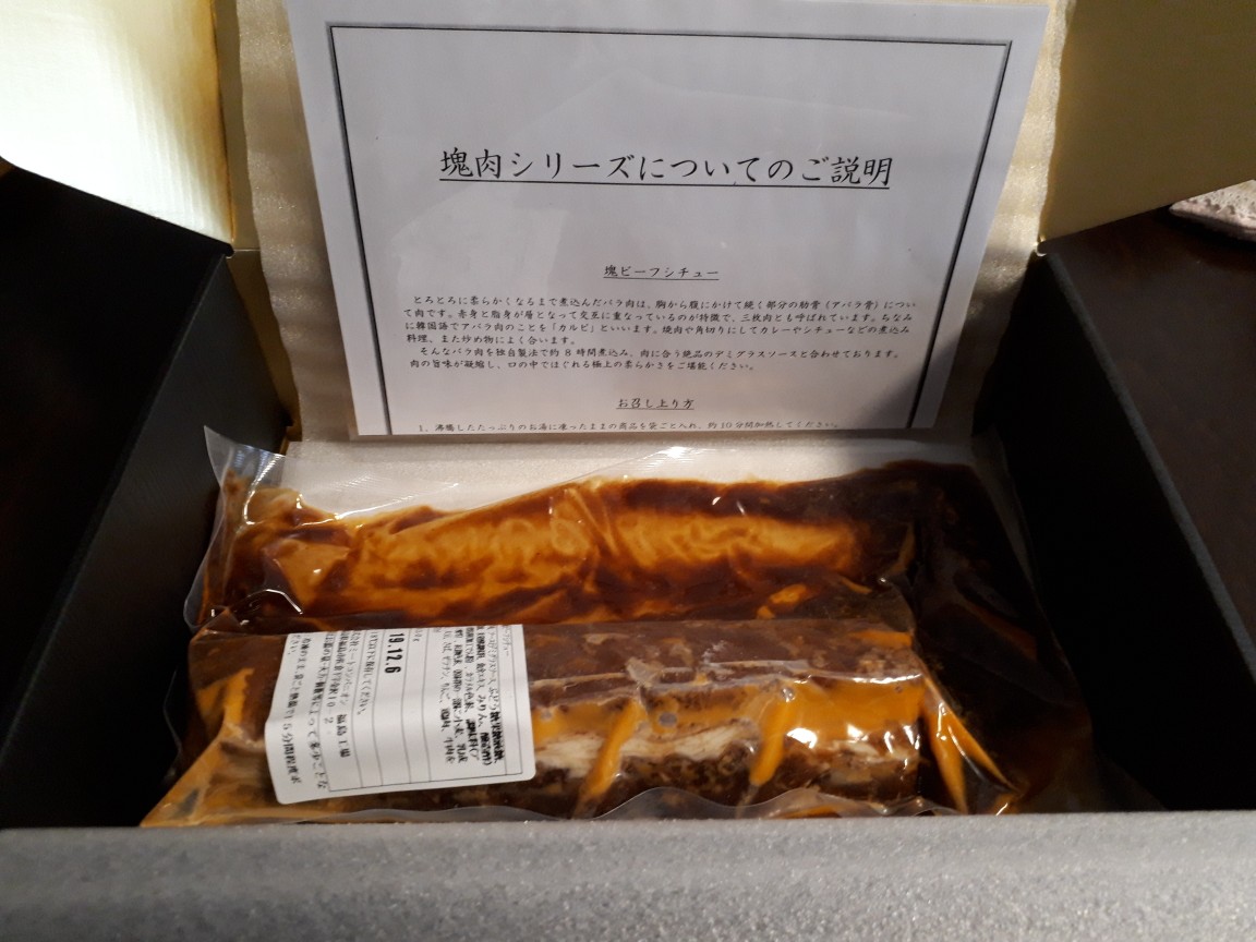 外が黒で内側が金色のおしゃれな箱に入った、インパクト大の塊肉!