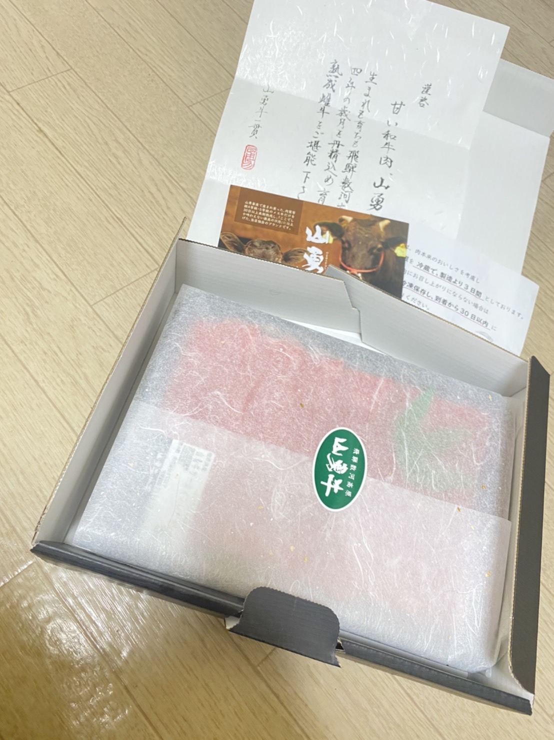 そして、開けた瞬間、これは、本物?って思うほど、サシの入った綺麗なお肉に、ますますテンションがあがります。