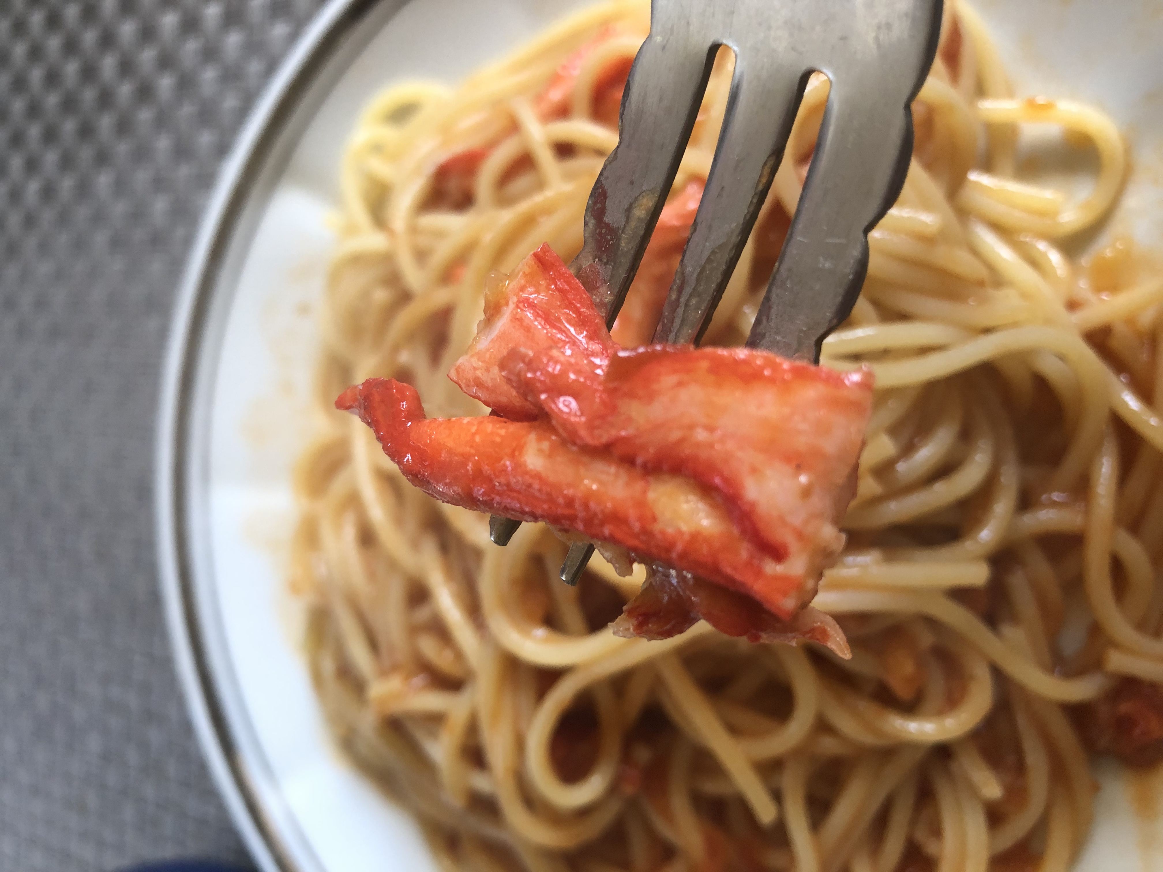 麺とソースを一緒に温めているのに、麺がソースを吸ってしまうという事はなく、モチモチの麺、とろりとしたソースもちゃんとあり、蟹の身の食感も香りもとても良く、レストランで出てくるパスタのクオリティでした。
