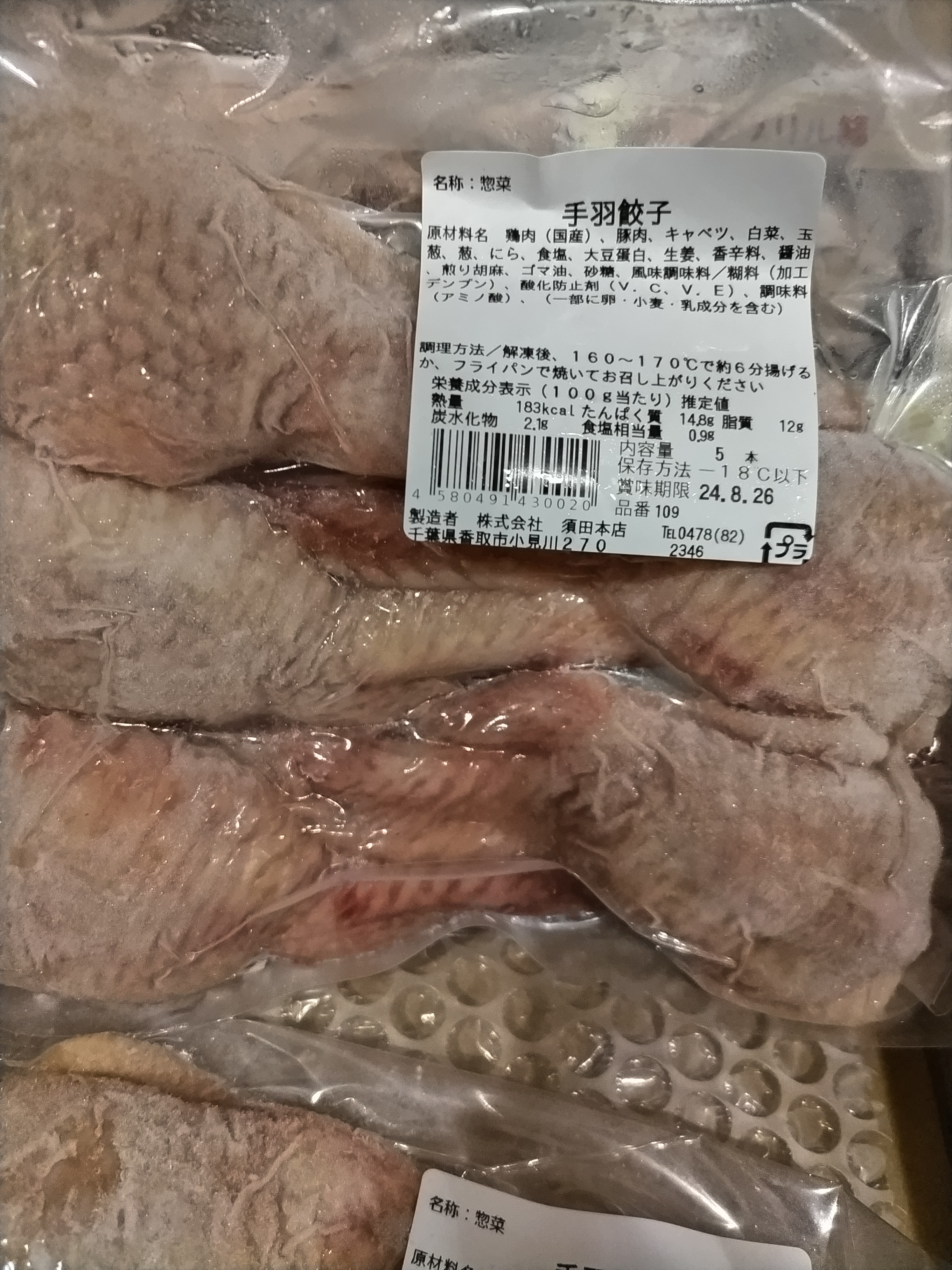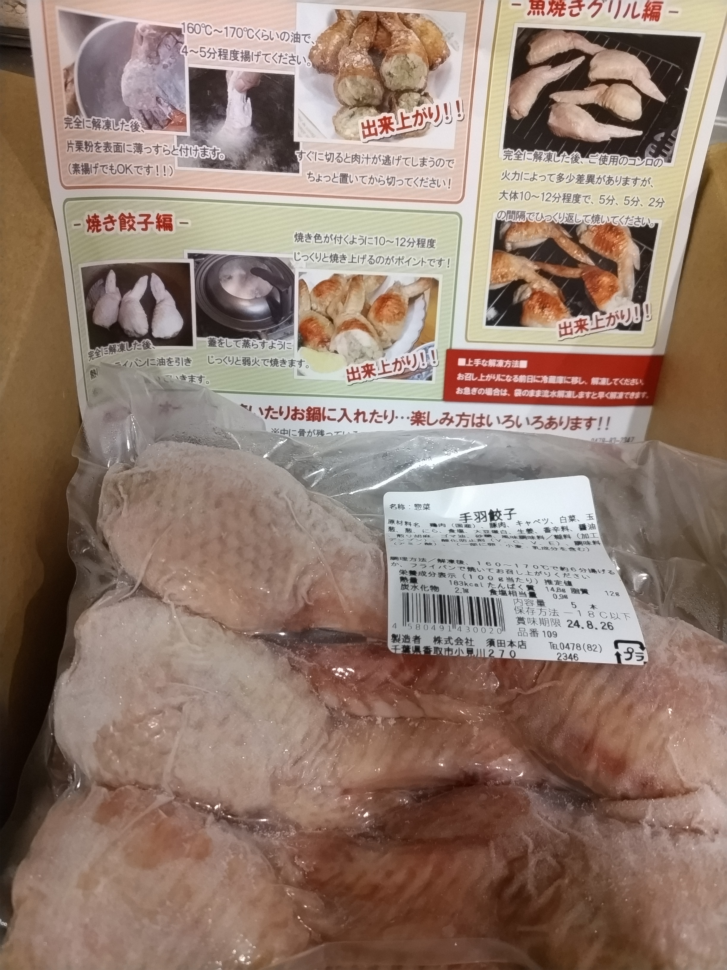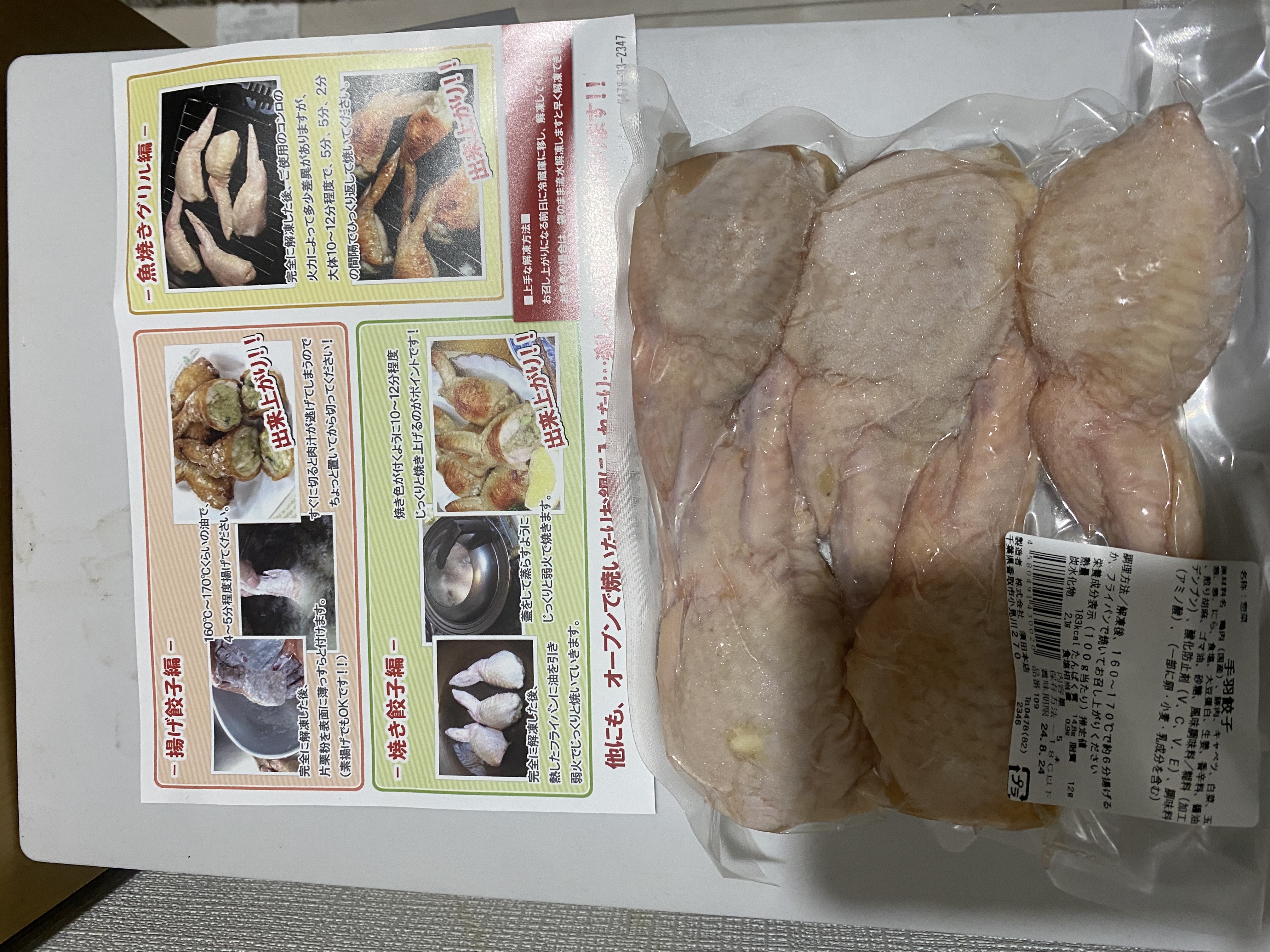 箱を開けると、作り方の説明が詳しく記載されたリフレットと5個ずつ真空パックされた手羽先餃子が2袋入っています。1袋でも結構重みがあります。
