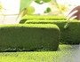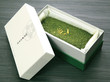 切り分けた断片は、一面に広がる茶畑の深く美しい緑色。大切に手間かけて育てられた光景が見えるようです。