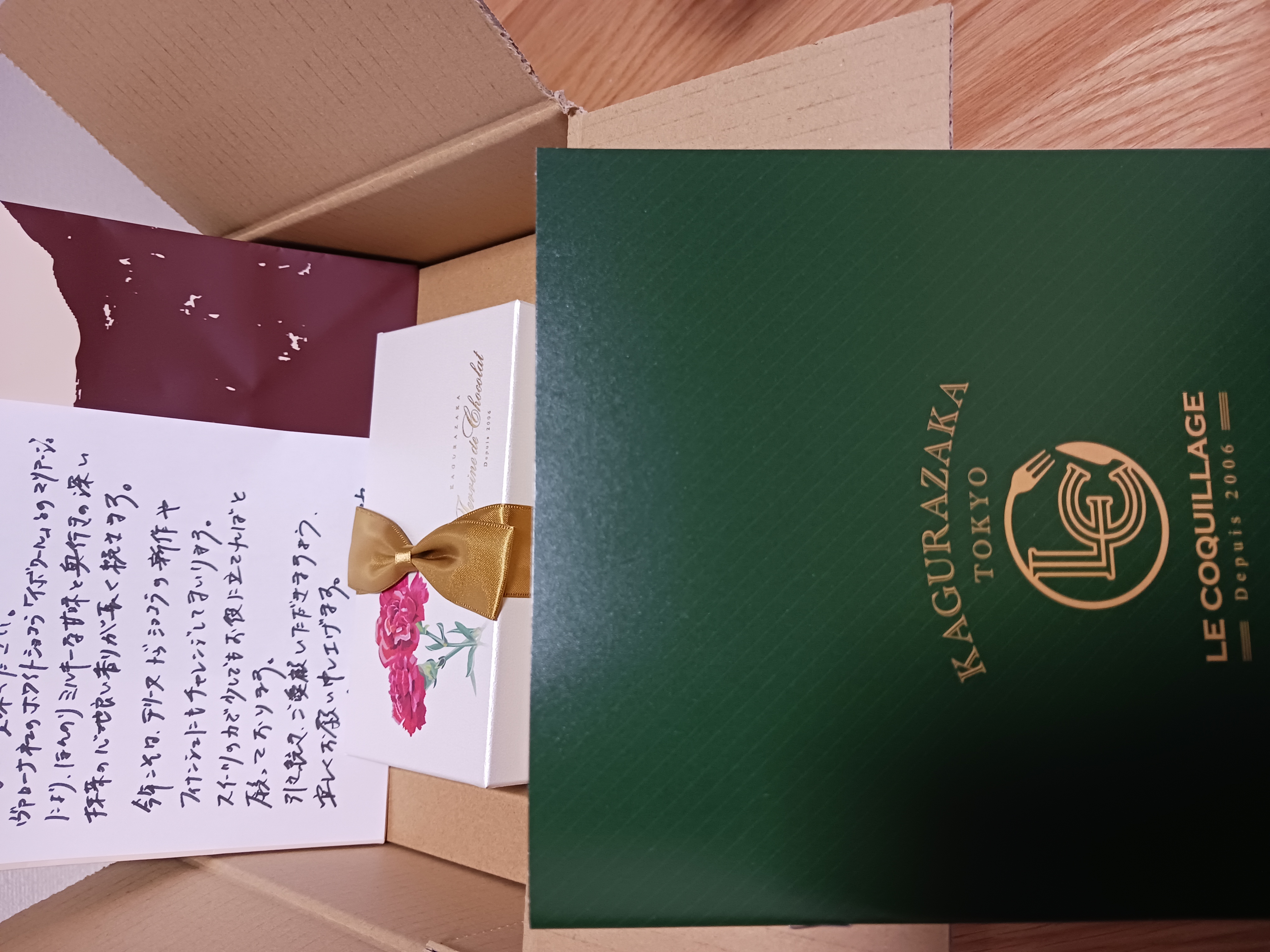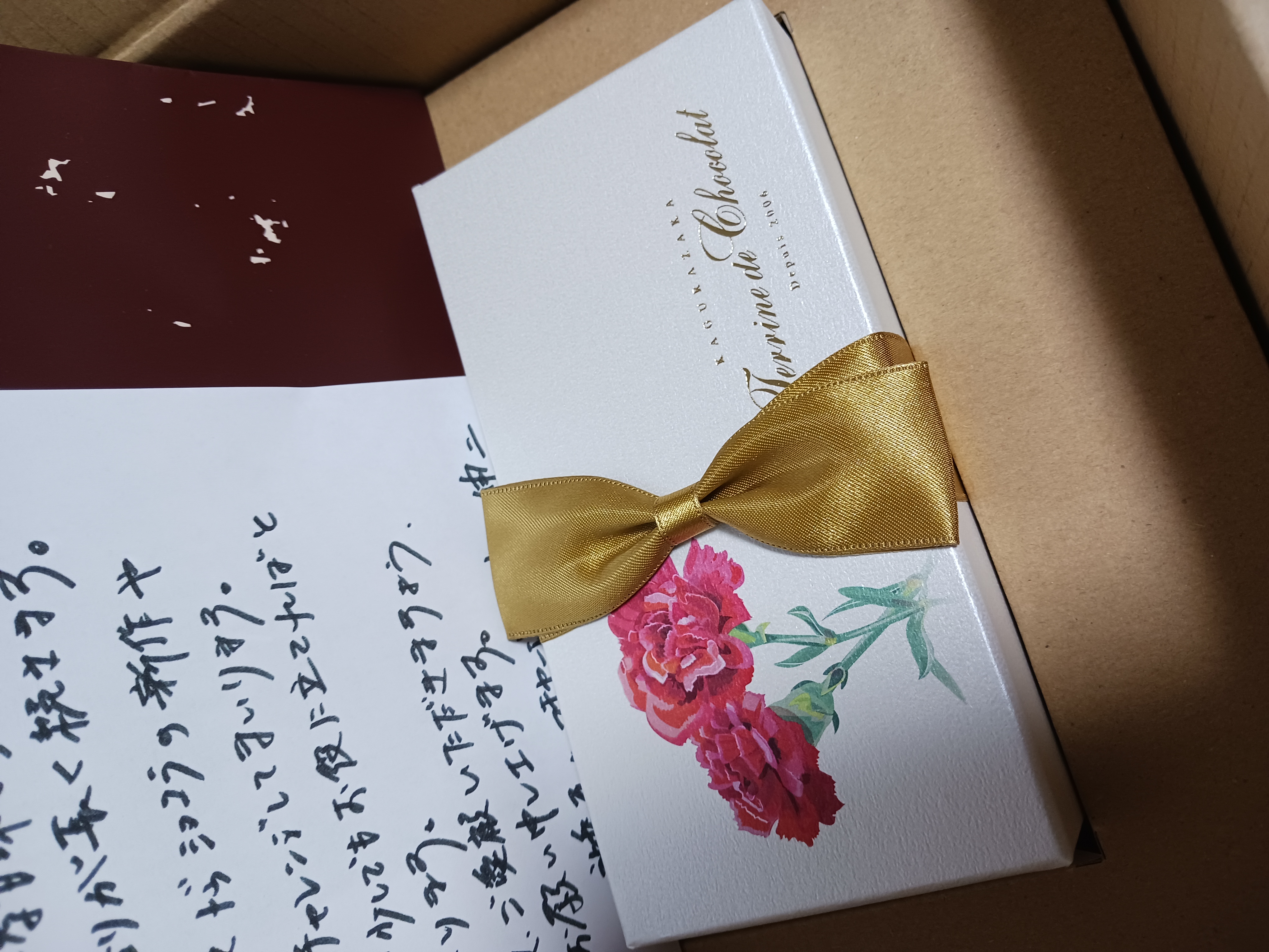 段ボールを開けると、リボンが掛かった美しい化粧箱が。