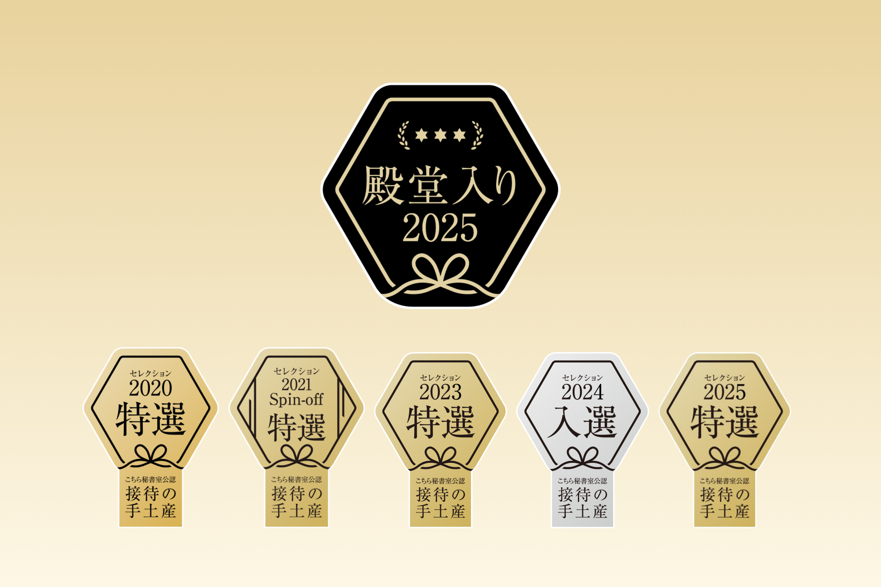 現役秘書が審査員となり、ビジネスシーンでの利用にふさわしい手土産を評価・認定する品評会『"接待の手土産"セレクション』にて、2020年「特選」、2021年「spin-off 特選」、2023年「特選」、2024年「入選」、そして2025年「特選」を受賞し、5度の受賞を経てついに殿堂入りを果たしました。