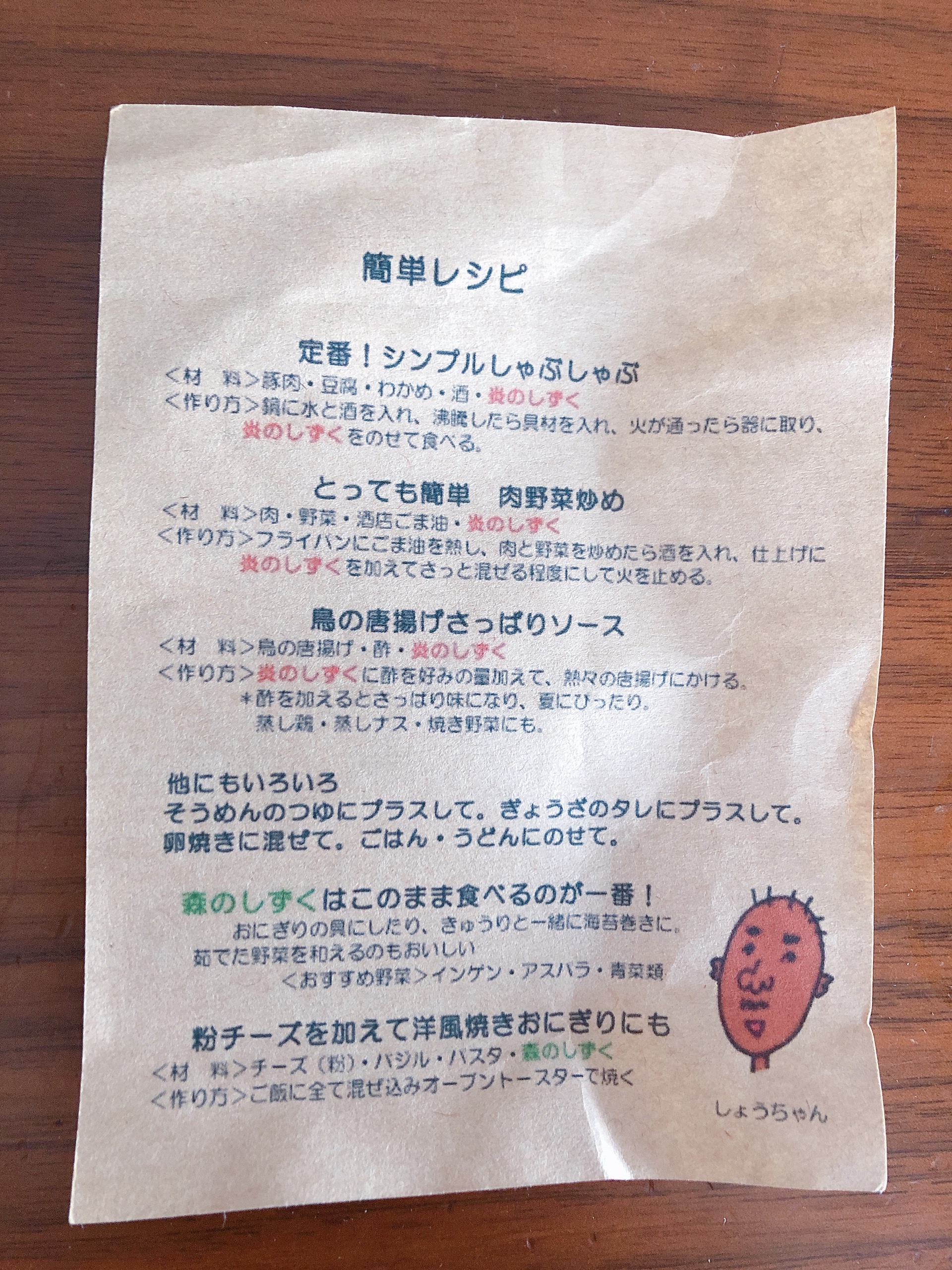 先ずは森のしずくは説明書通りに、おにぎりの具にして子供たちのお弁当に入れました。